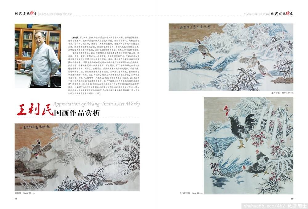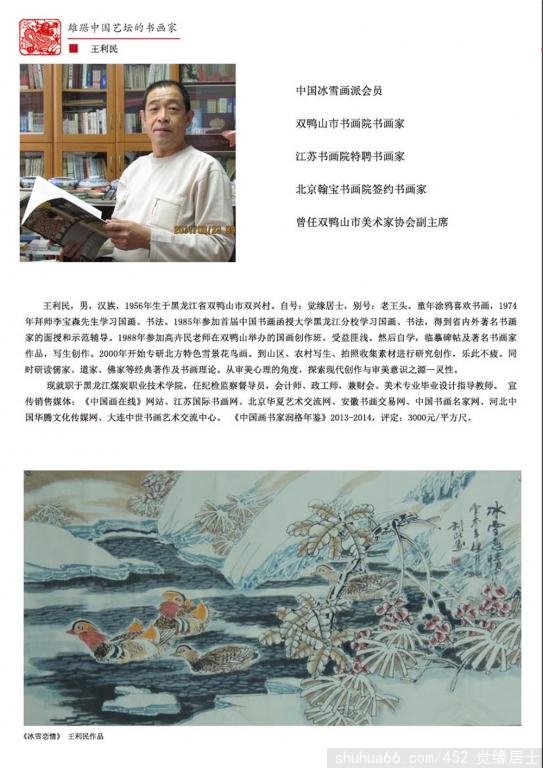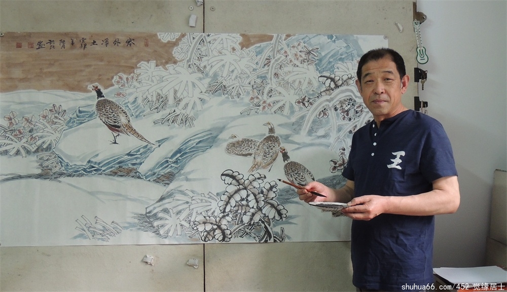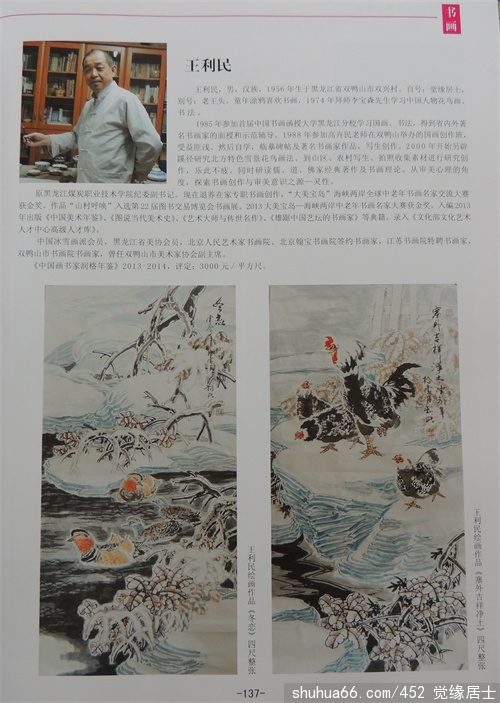 2013年退养,创办王利民雪景花鸟画工作室,从事专业书画创作。