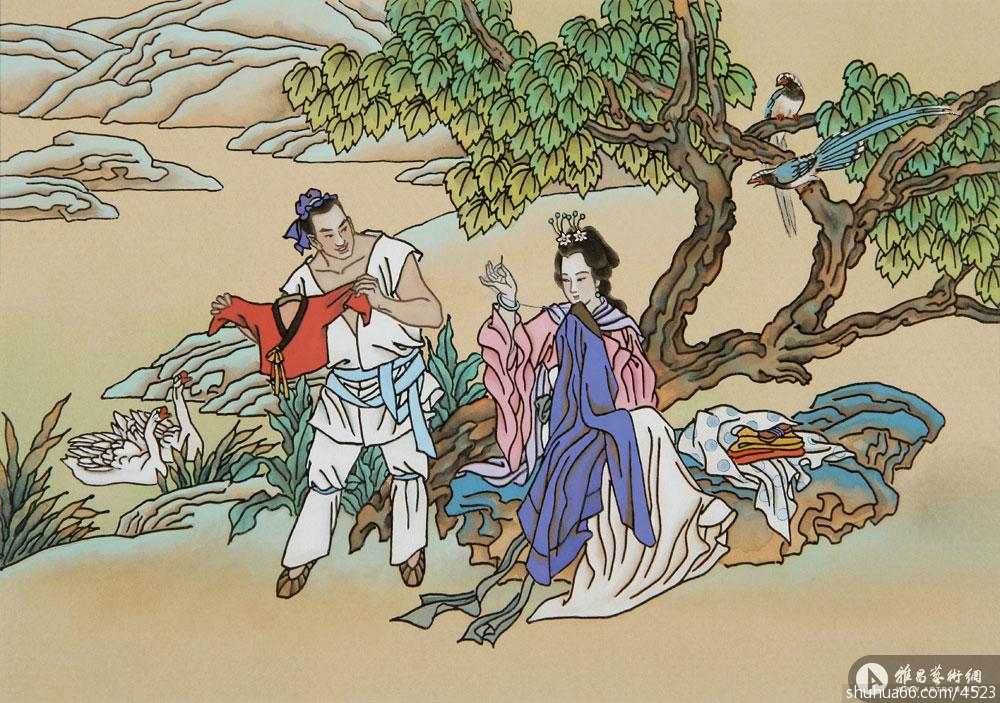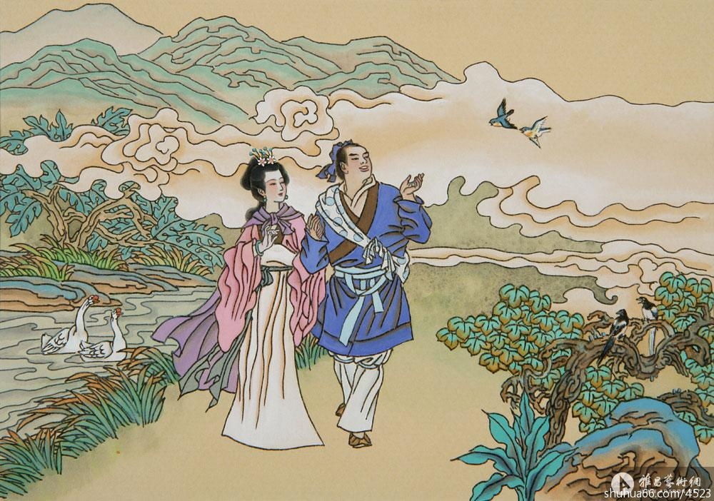 萧玉田用力更多的是在古典女性人物的塑造上。就我所见到的作品看,似乎这些作品也更为成功。中国文化源远流长,种种神话的历史的传说丰富无比,文学诗歌更是浩如烟海瑰丽辉煌,是后人取之不尽的创造源泉。萧玉田是有心人,这些年来潜修默炼,在文化宝山中不断开掘,在古人诗词意象中寻求灵感,从而创作出一批内涵深沉幽远,古意盎然生动,形象具体感人,技法娴熟到位的作品。把古诗词的内涵意象形象化,通过现代人的想象形成生动感人的画面,对于广大观众来说,是架设了沟通古人思想情感的桥梁,也使人们更好地了解古人,学习古人的美好情操,提高人民的素质与审美力,是很有现实意义的。他的一系列历史人物画是借着古诗为题画出来的,如曹操的《短歌行》、蔡琰的《悲愤诗》等。而据汉乐府《孔雀东南飞》所作的16幅组画,据李白《清平调》等诗词所画的杨玉环、西施、王昭君等古代仕女,均是以诗情营造画境的成功之作,得到受众喜爱。此外有更多的以唐宋诗词名作的意境创作的画幅,足堪玩味,如杜牧的咏史诗本身内涵深刻,立意独特,境界清新而早已脍炙人口,老萧则使之成为赏心悦目的视觉画面,如“折戟沉沙铁未销,自将磨洗换前朝”、“一骑红尘妃子笑,无人知是荔枝来”、“商女不知亡国恨,隔江犹唱后庭花”等名诗名句,另如宋代女诗人李清照的词中佳品,一一化做玉田笔下清新佳妙的画面,的确令人佩服他的绘画本领。