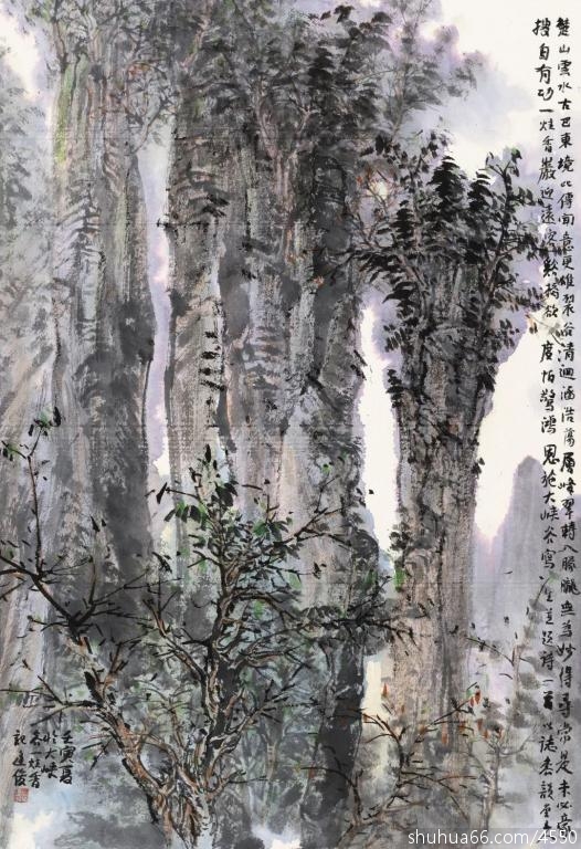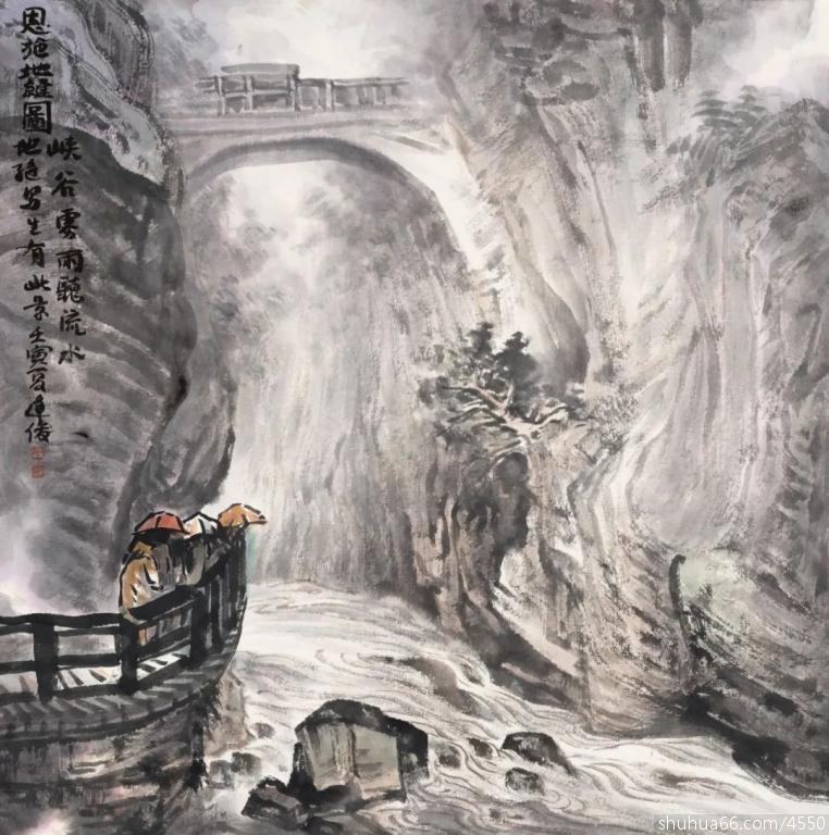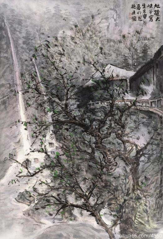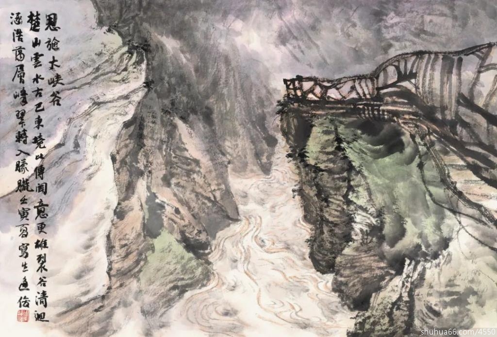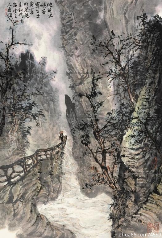 裂谷清迴涵浩荡,层峰翠转入朦胧。