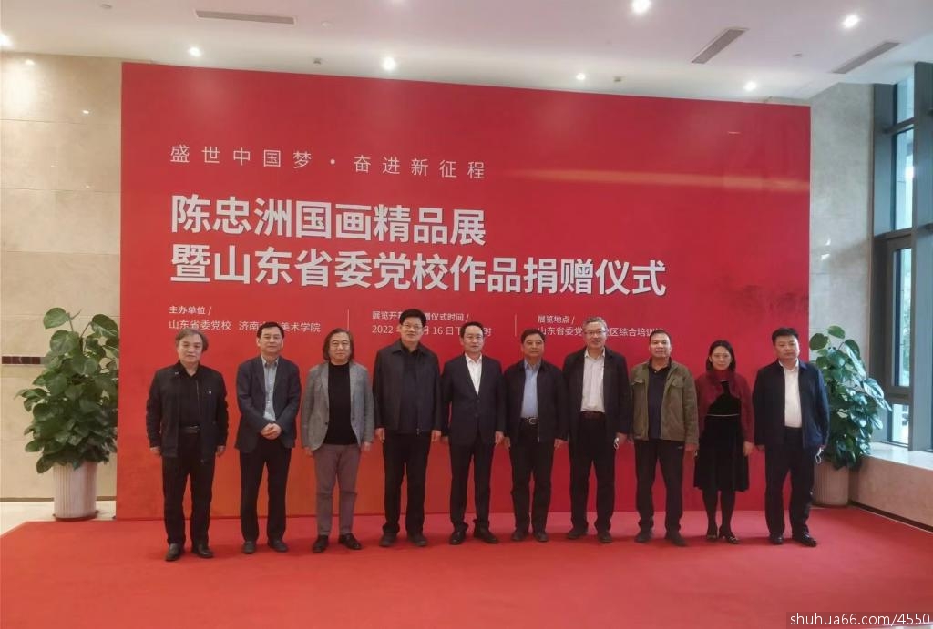 10月16日,陈忠洲国画精品展在山东省委党校开幕,此次画展主题为“盛世中国梦·奋进新征程”。展览现场,陈忠洲向山东省委党校捐赠了两个巨幅书画作品,省委党校(山东行政学院)常务副校(院)长徐闻向陈忠洲颁发了捐赠证书。