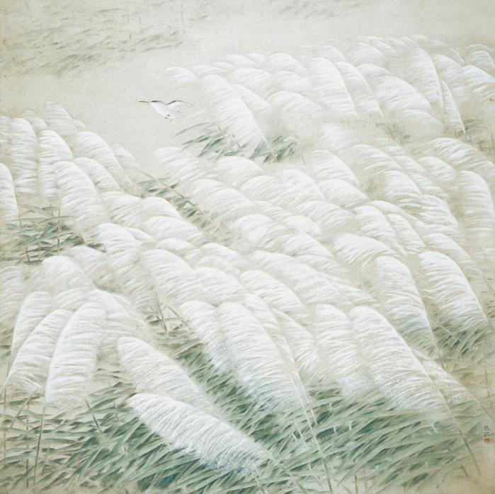 【第一单元】墨彩流芳——历年创作精品系列为使作品得到完整的呈现,展览以高仿的形式展出数件早期被收藏的画作,主要是从1988年开始获奖、入选的代表作品。从早期的《清音》、《山水之间》、《天香》、《秋天的况味》等,可以看出画家在艺术创作上做了很多的突破和创新。