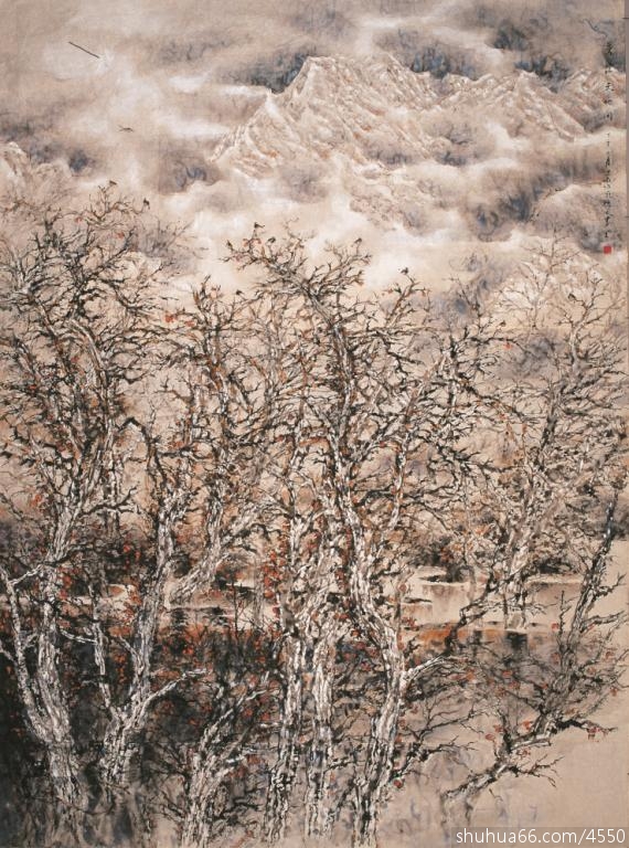 -部分作品欣赏-本单元主要以山水画为主。根据不同地域的地貌感受,尝试以不同的构图、笔墨来传达自身感受。画家钟情于自然山川的茂林沟壑,山涧溪流,也流连于川西高原,锦江秋色,千年石窟。