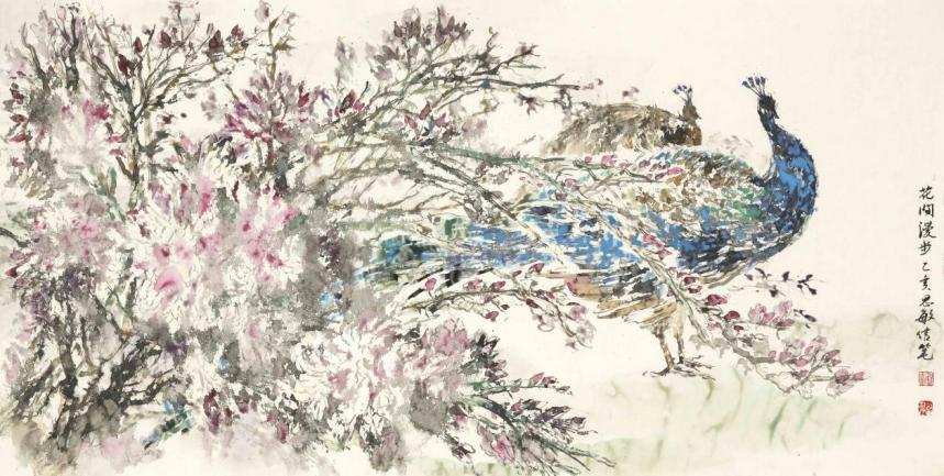 繁花造梦——花鸟系列本单元主要以花鸟画为主,包括高山杜鹃,孔雀、紫藤、向日葵等系列。创作手法包括大写意和小写意,分别在熟纸和生纸上进行创作,探索不同的表达方式。