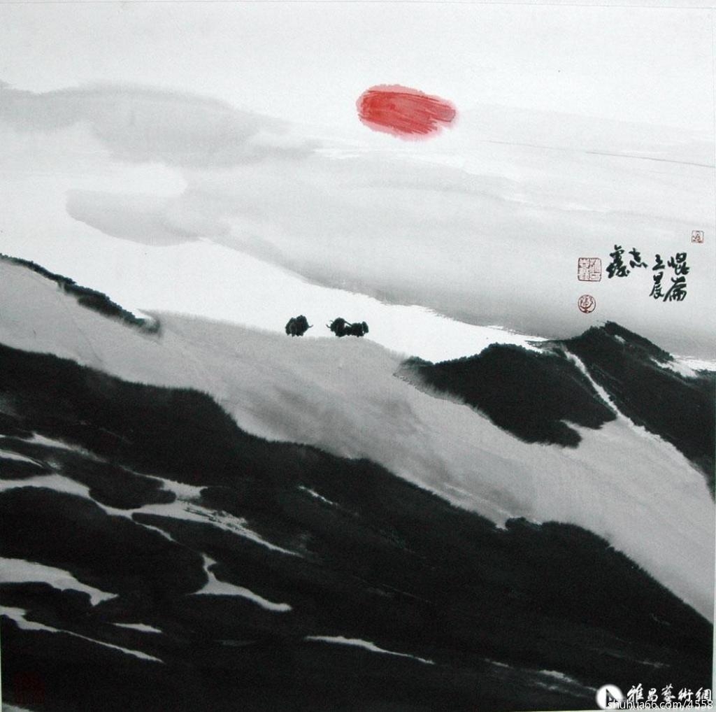 蒋志鑫是我的好兄弟,认识他已超过二十年。1989年春,我在北京饭店遇到他,当时他正为钓鱼台国宾馆世界银行驻中国办事处绘制巨幅大作。1990年春节我去甘肃画院找他,我们冒着大雪去甘南拉卜楞寺,看青稞草原,我第一次见到牦牛。回到兰州看了他大批作品,十分感人。1992年7月我为他在香港湾仔艺术中心举办了蒋志鑫个人书画展,他的作品得到了香港藏家珍藏,此后我一直在跟踪他的画。要解读志鑫的作品我觉得别无他径,最简单直接的方法当然是从最基本的中华民族美学理念出发。中国几千年文化,无论是诗词歌赋还是书画,无不讲究:气、韵、神。从绘画的角度,三者均属“象”,形而上者为“象”,形而下者为“相”。而志鑫正是一个以一生精力去探索、感悟“气、韵、神”的艺术家。