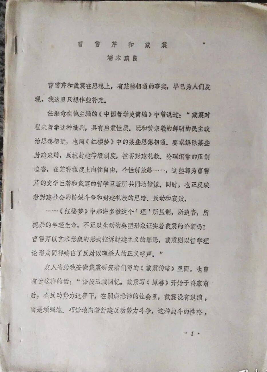 最后是小说创作中端木先生对史料文献的过度依赖以及有些社会场景铺陈过多的阅读体验。我想这和端木先生 “红学家”与“小说家”的双重身份有关。