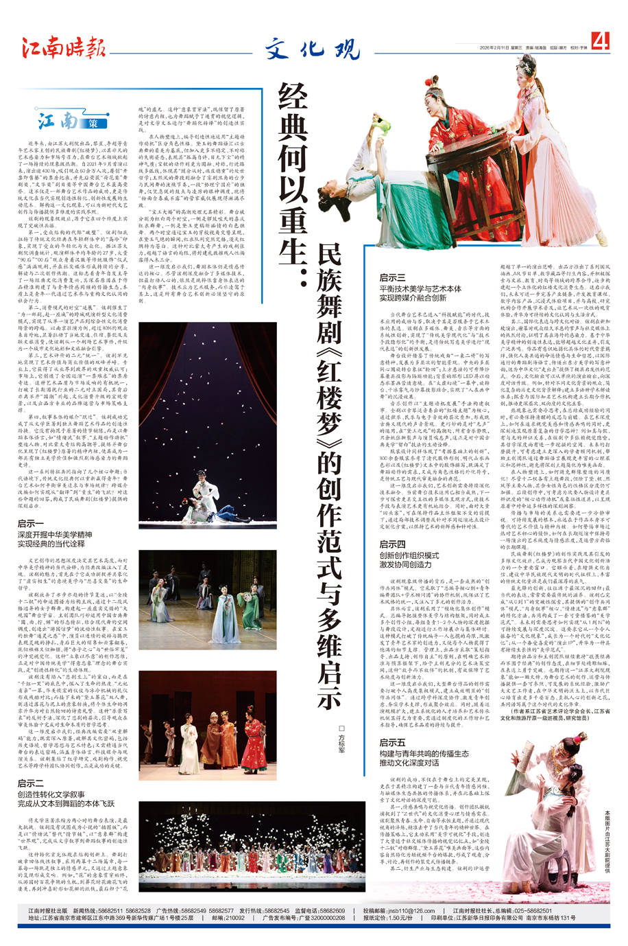 期待出品方和主创团队继续秉持“敬畏经典而不囿于经典”的创作态度,在细节处精雕细琢,在表达上勇于突破。也期待这一“江苏大剧院现象”能如一颗火种,为舞台艺术的创作、运营与传播提供一套可参照、可发展的系统经验,激励广大文艺工作者,在中华文明的沃土上,以当代匠心培育出更多千姿百态、直抵人心的创新之花,共同谱写属于这个时代的文化华章。