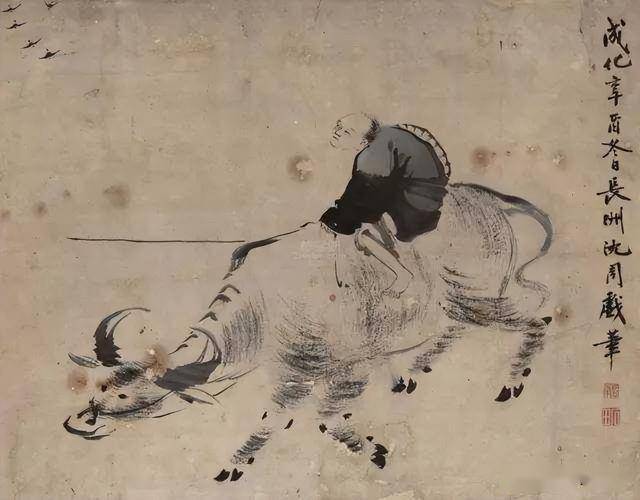 而徐渭(字文长)虽未直接受教于沈周,但其艺术精神与沈周一脉相承。徐渭的“泼墨大写意”风格,正是在沈周“粗笔写意”基础上的极端化发展。其《墨葡萄图》中“半生落魄已成翁,独立书斋啸晚风”的题跋,与沈周“苍鹅不向金笼献羽毛”的精神内核如出一辙。