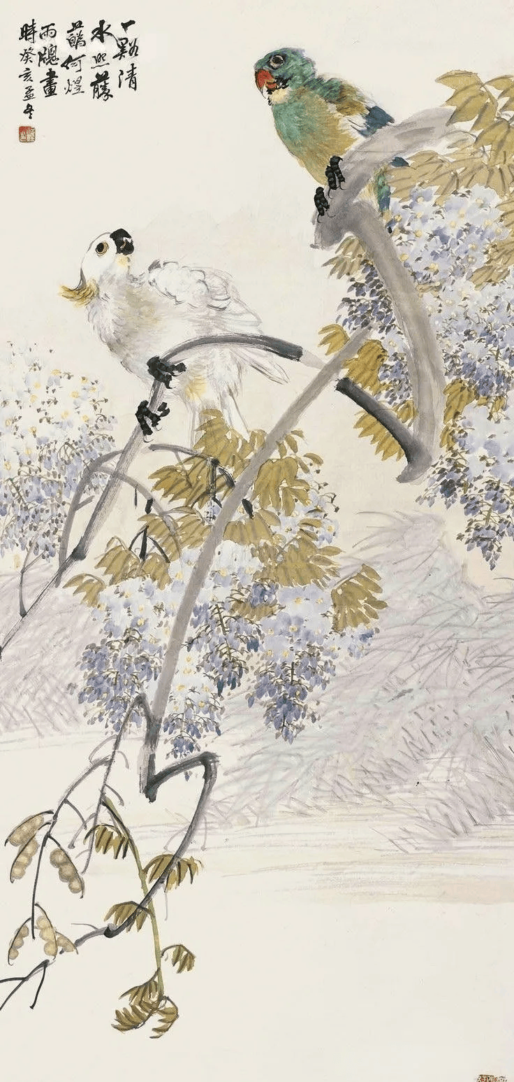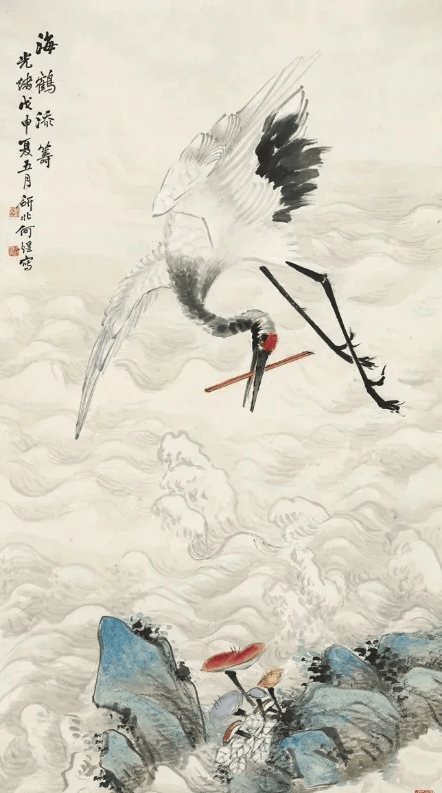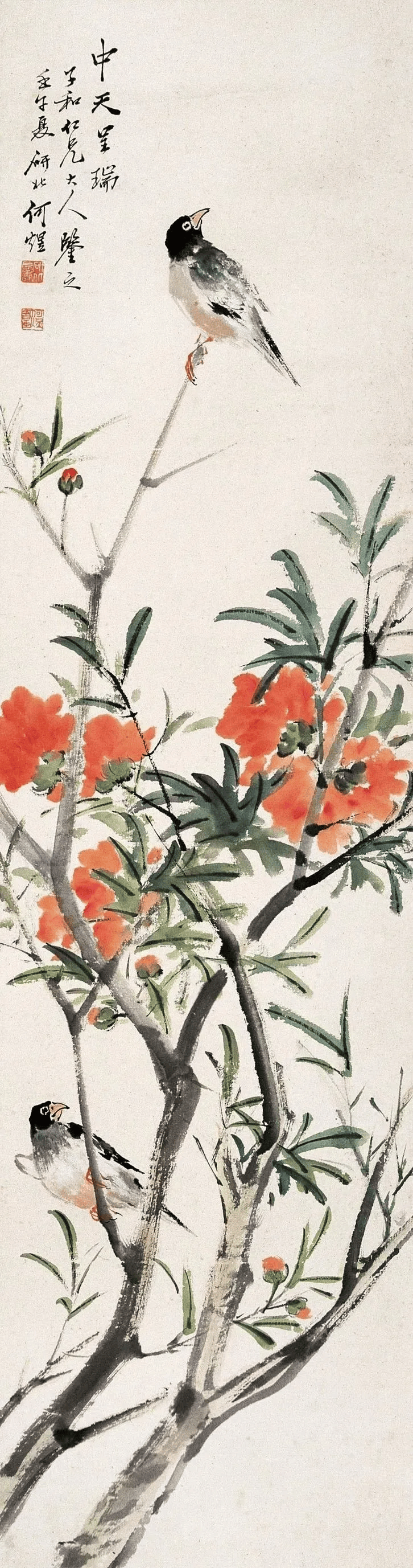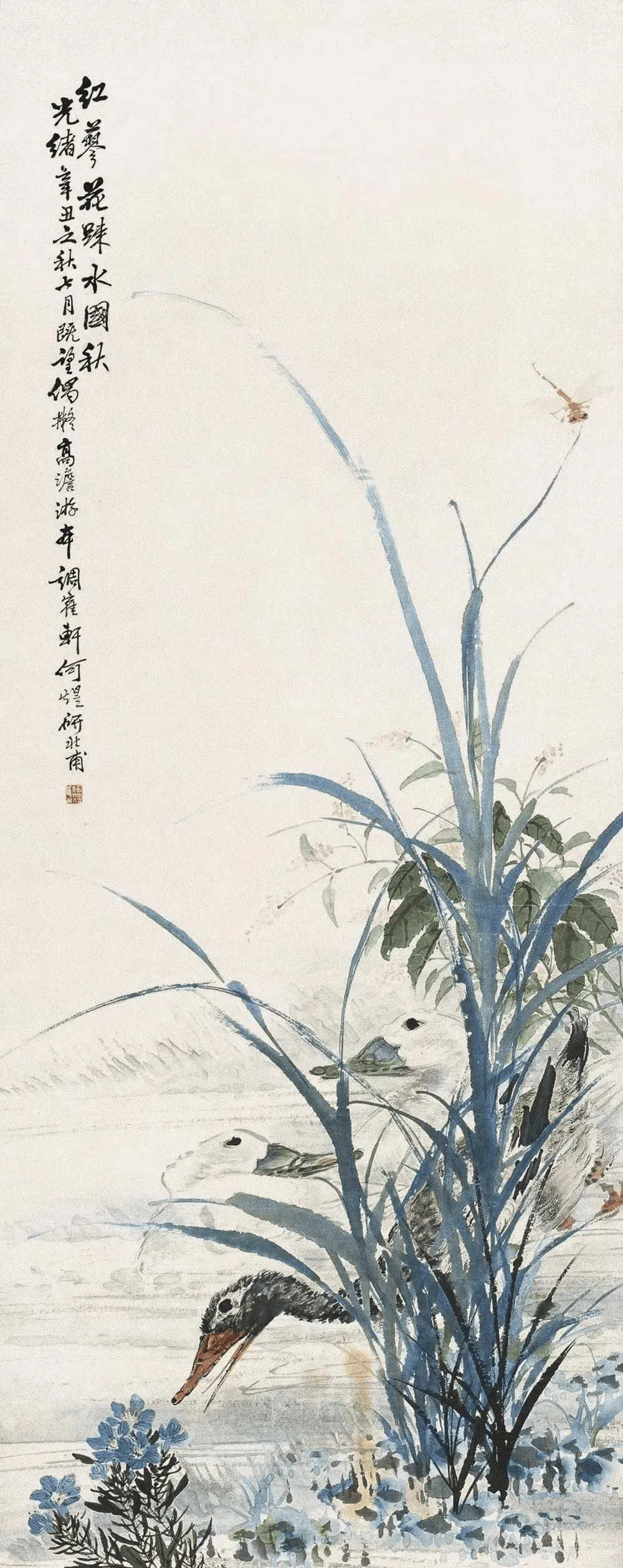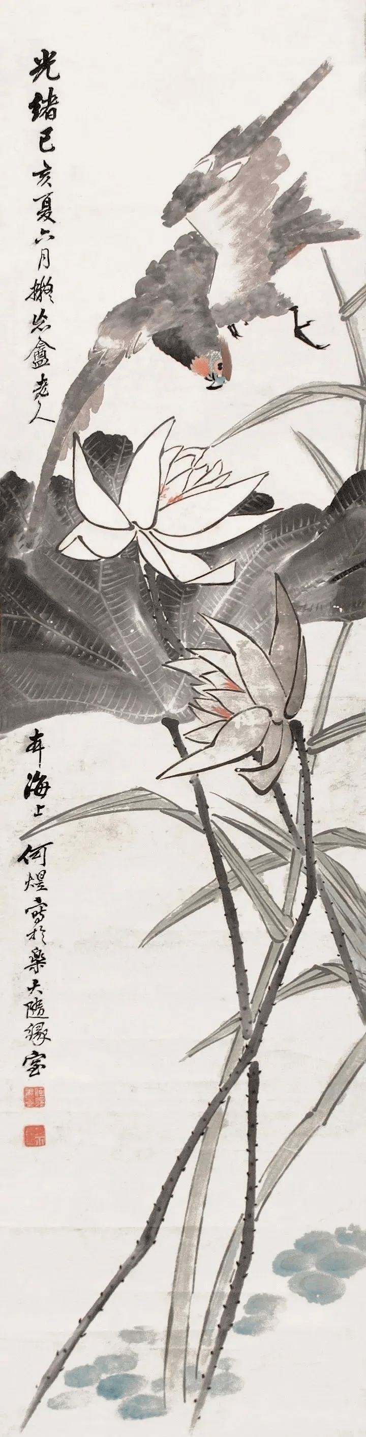 何煜(1852-1928),近现代海上画派著名画家。擅画没骨花鸟、草虫。其作品以精妙绝伦的笔墨、清润典雅的设色、热烈生动的意境,一度名噪上海,并成为近现代海上画坛的重要代表人物。