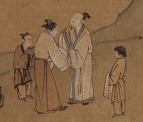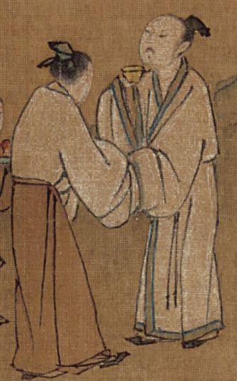 如此体态神情,便将朋友间幸遇佳节的欢欣传达得很生动。
