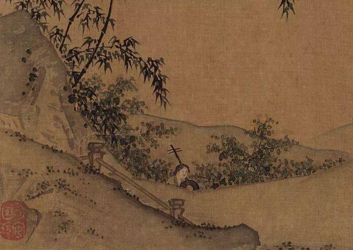 南宋 马远《月下把杯图》 25.7x28cm 绢本设色 天津博物馆藏