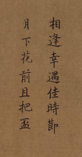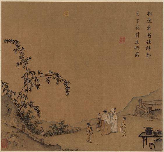 也难怪杨皇后(即宁宗皇后杨氏)非常喜爱此画,还留下了楷书诗句题跋——相逢幸遇佳节时,月下花前且把杯。