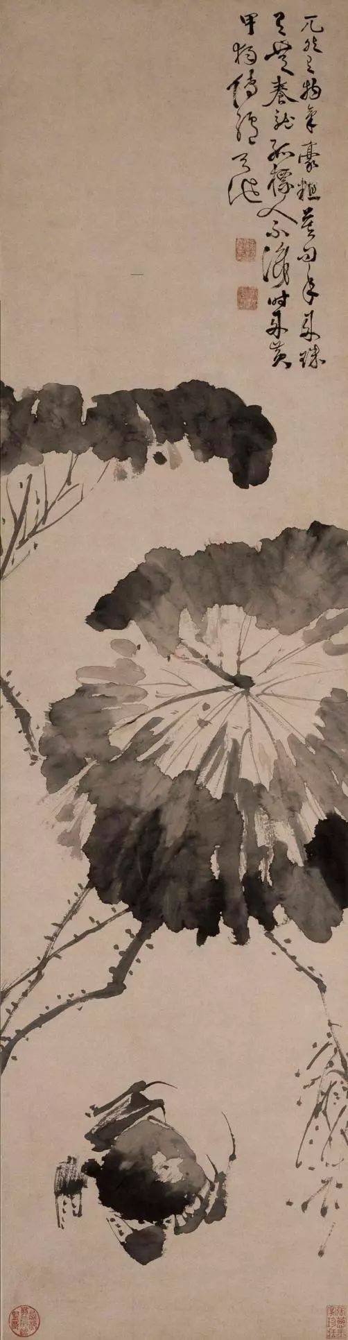 观全画,荷叶空灵萧疏,螃蟹强壮有力,二者对比鲜明。