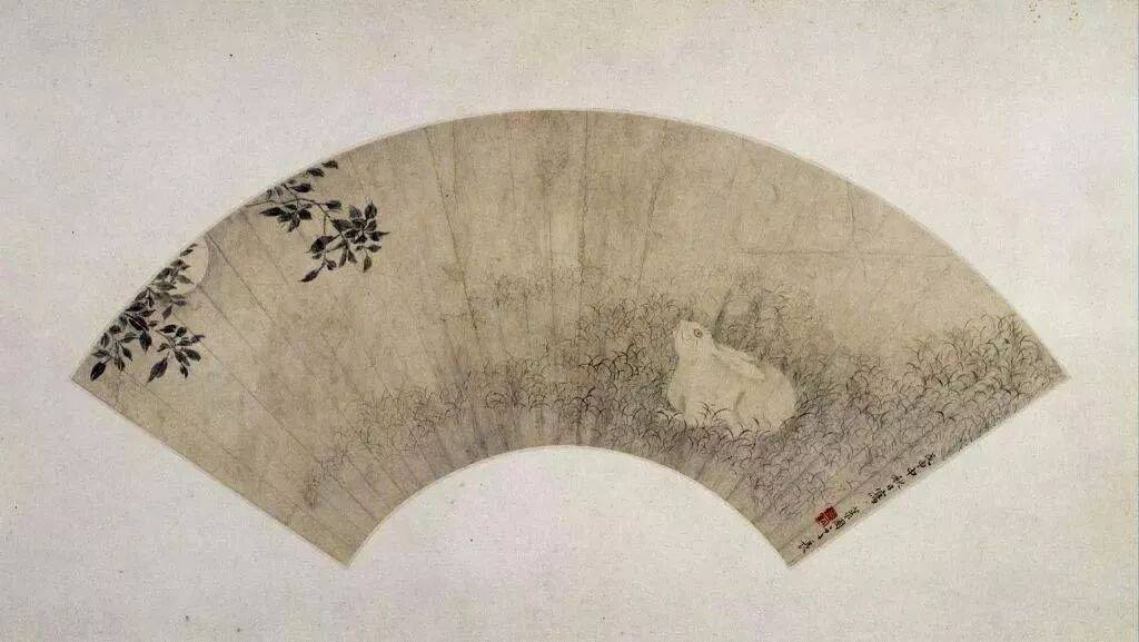 此图构思巧妙,一只白兔居于画面主体,通过其仰视的目光,可见左上角被桂树叶遮掩的半个月亮,从而生动地点出中秋时节,白兔与桂花和明月之间的关系,以及它们之间内在的美好传说。