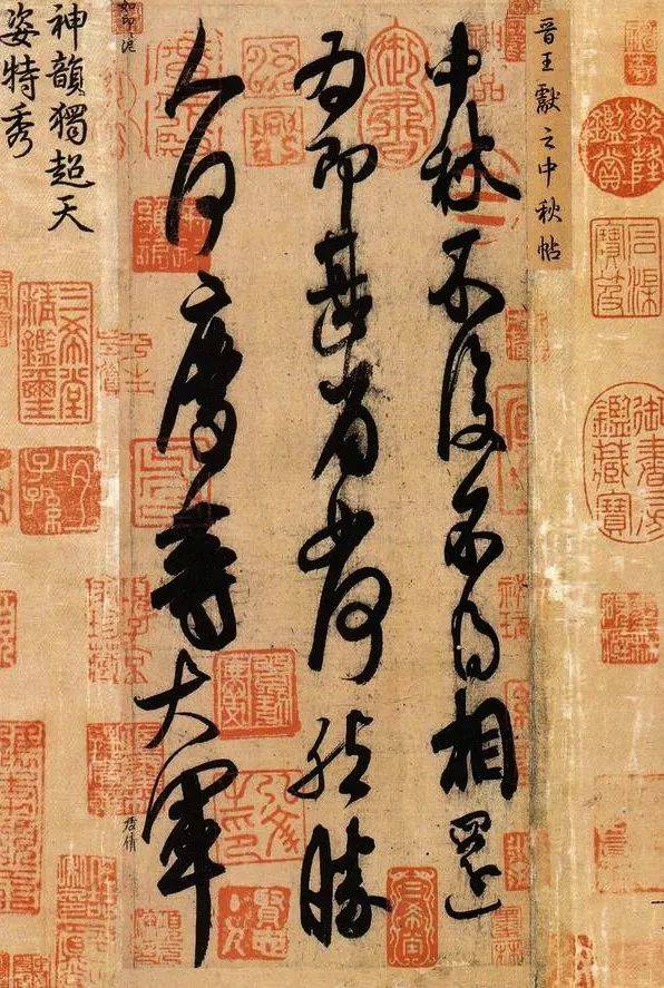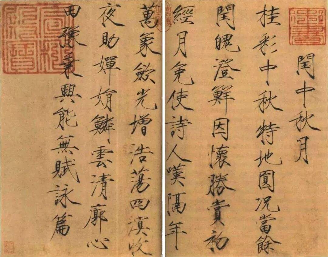 “中秋”二字最早出现于《周礼》之中,魏晋时有“谕尚书镇牛淆,中秋夕与左右微服泛江”的记载。这件以“中秋”命名的法帖,现仅存3行22字:中秋不复不得相还为即甚省如何然胜人何庆等大军。虽然断句未达成共识,但表达思念的情感隐现其中。它与王羲之《快雪时晴帖》、王珣《伯远帖》三帖,被乾隆皇帝誉为“三希”,意为此三帖乃希世珍宝。故宫博物院藏。