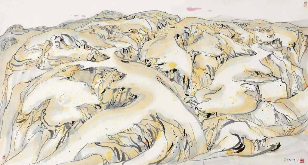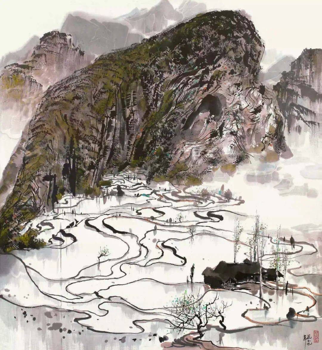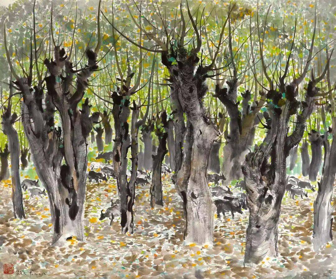 丽江的玉龙山,贵州的溶洞,桂林的山水,苏州的园林,新疆的牧场,青岛的崂山……都在吴冠中的画里。