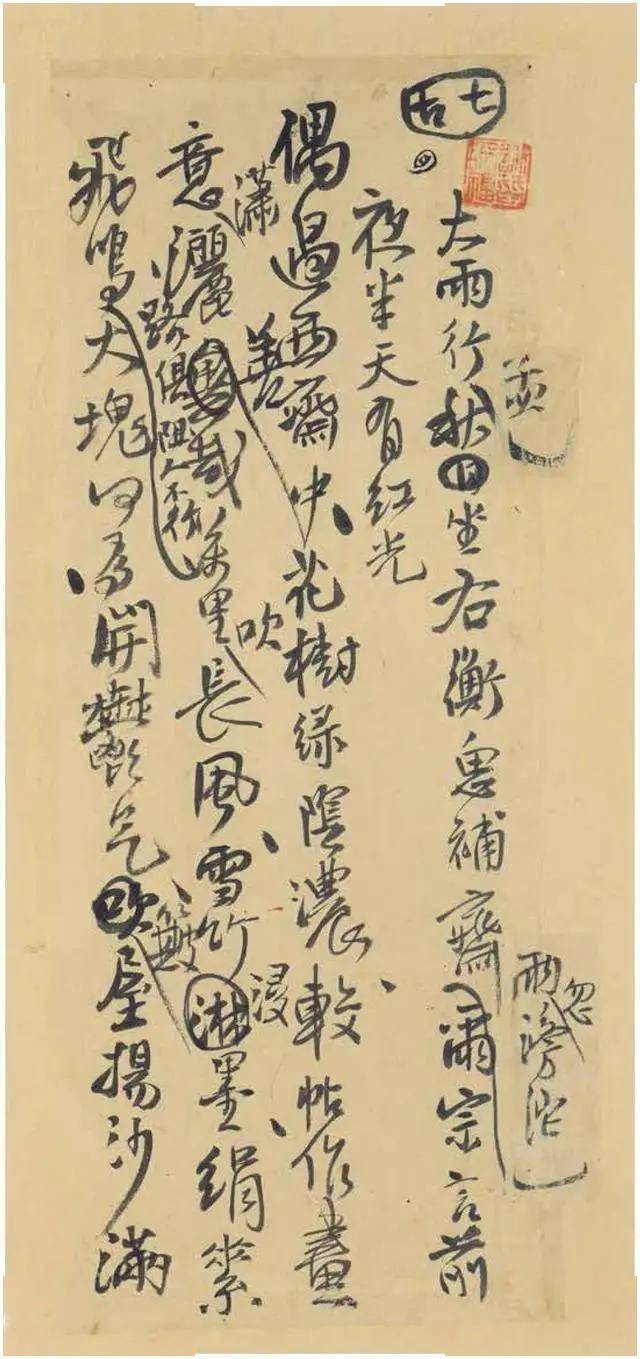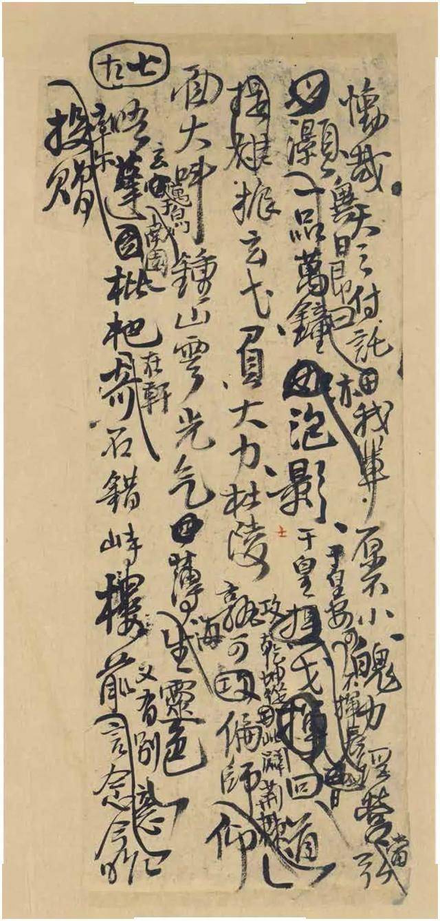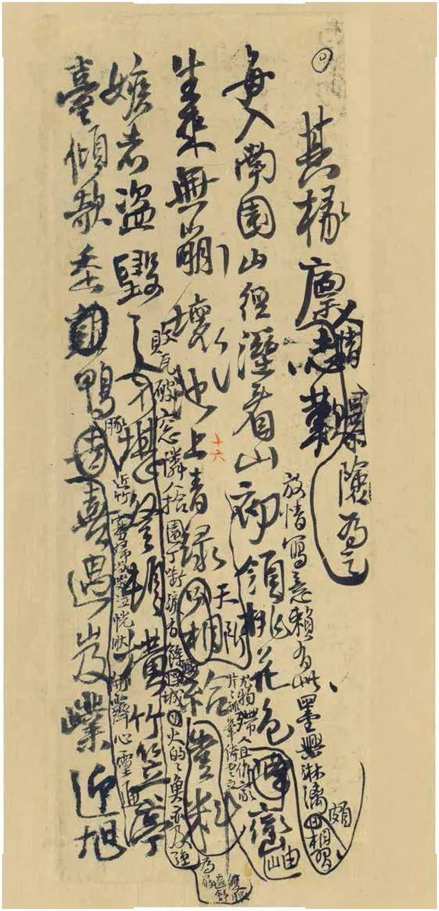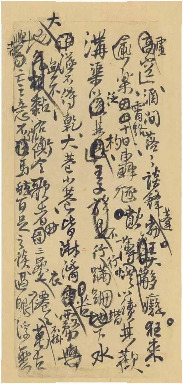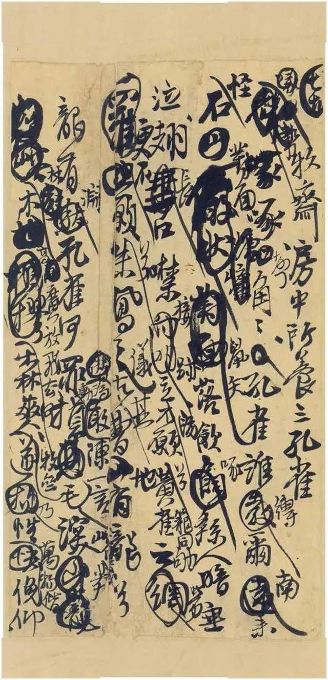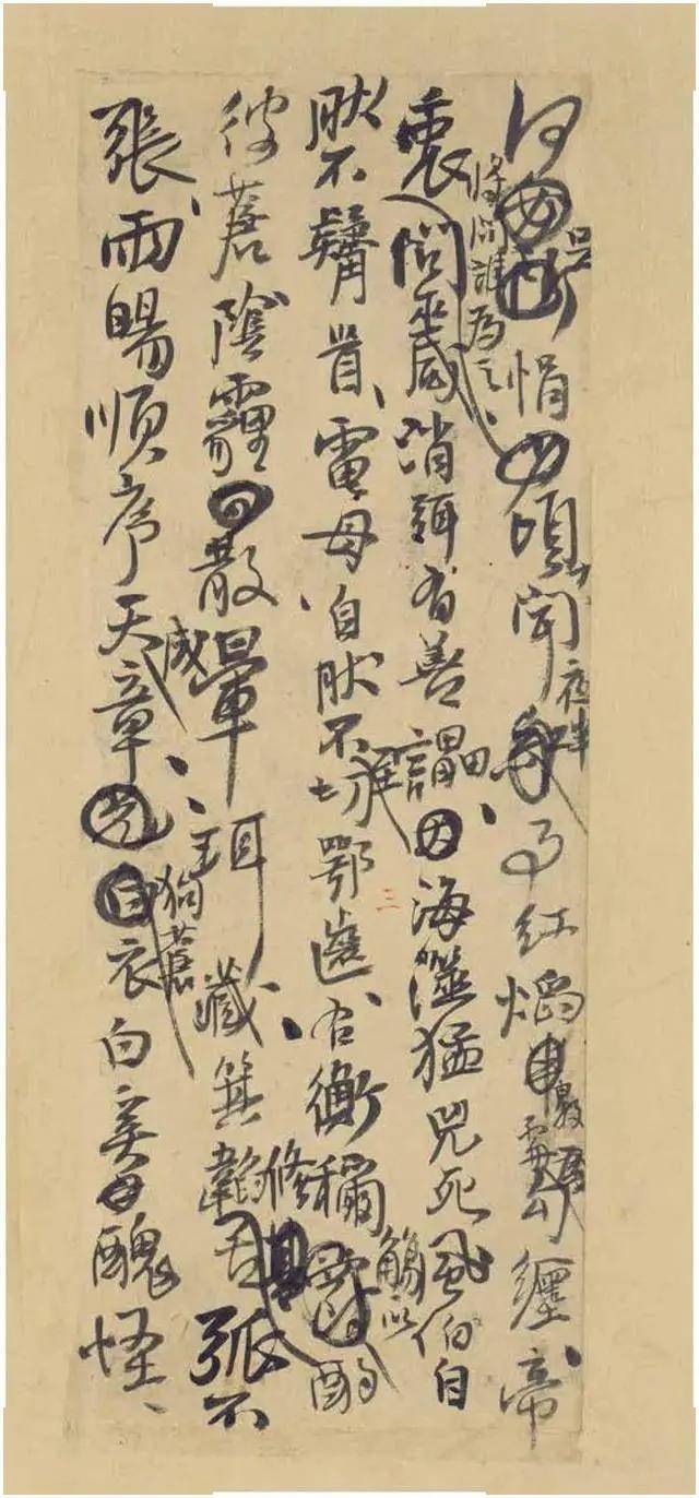 此帖虽看似杂乱无章,但细看之下它井然有序,它并不是一帖成品的草书作品,而是一份创作草稿,让我们了解到原来草书大家也是需要在创作之前打草稿的,更是让我们学习到在书法创作之时是如何打草稿并设计创作作品的。