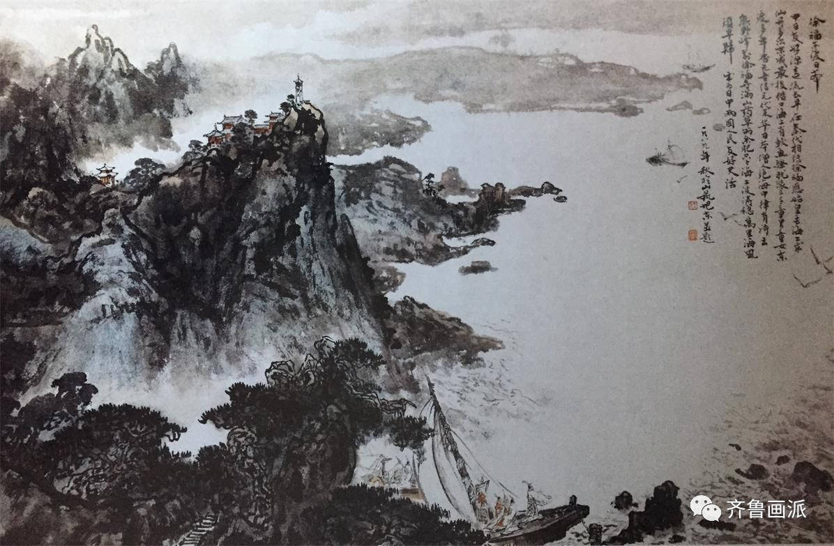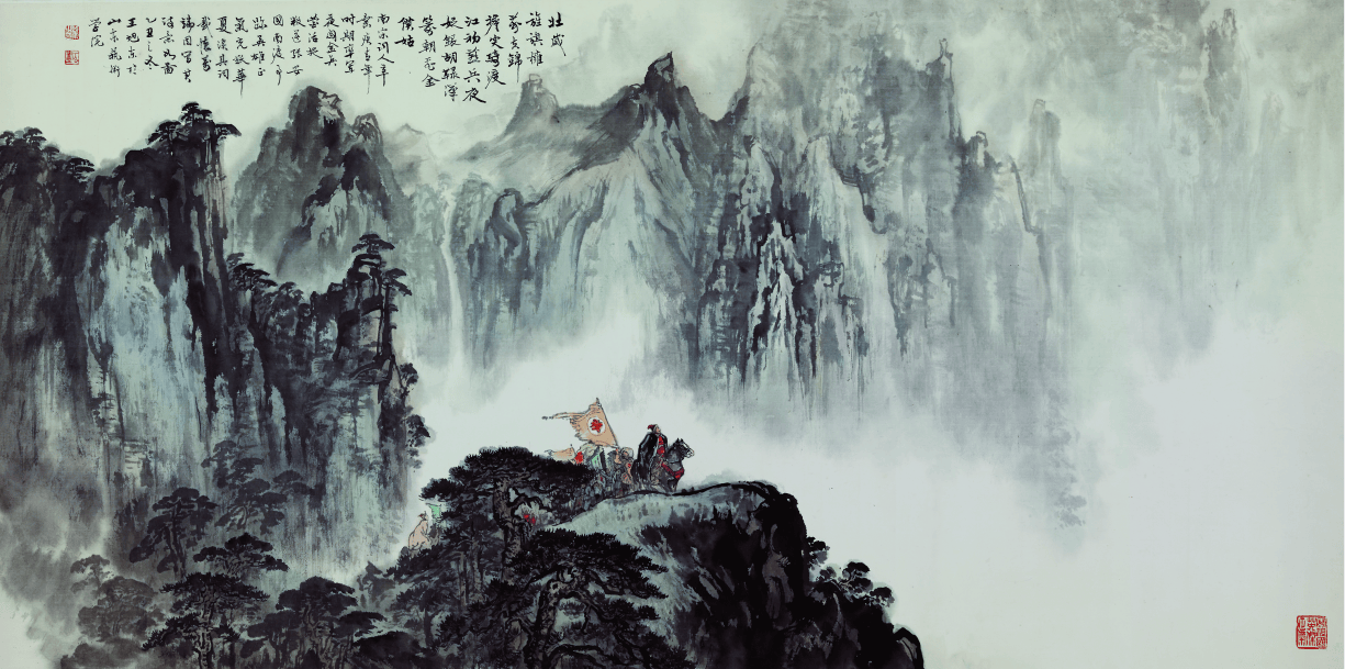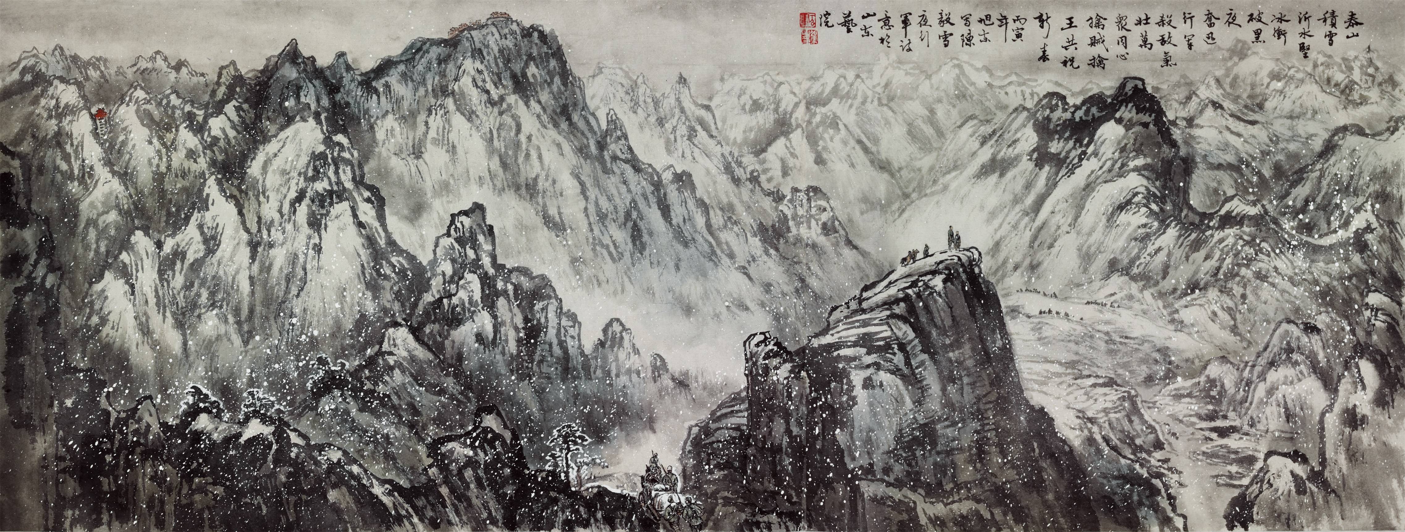王旭东创作一山一水一圣人题材代表作《齐鲁揽胜》 245X68cm 2014年