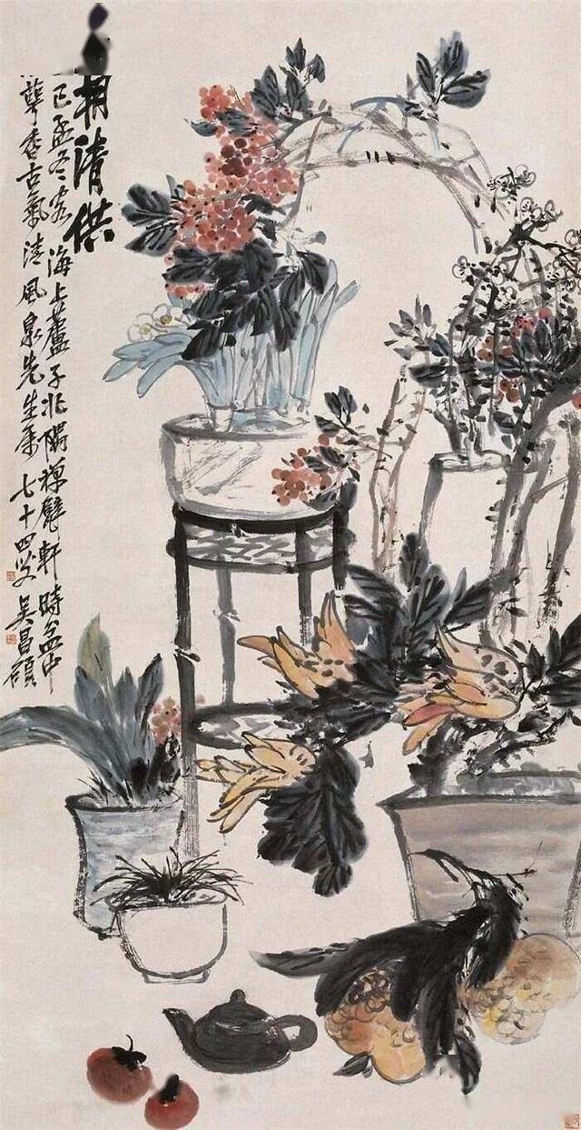 突破“水墨为上”的束缚,大胆使用高纯度、强对比的色彩。吴昌硕首开“红花墨叶”先河,齐白石进一步发展,以洋红点花,浓墨写叶,形成强烈视觉冲击。当代画家可进一步探索色彩的心理象征与情感表达功能,如以冷色调表现生态忧思,以暖色调传达生命热情。