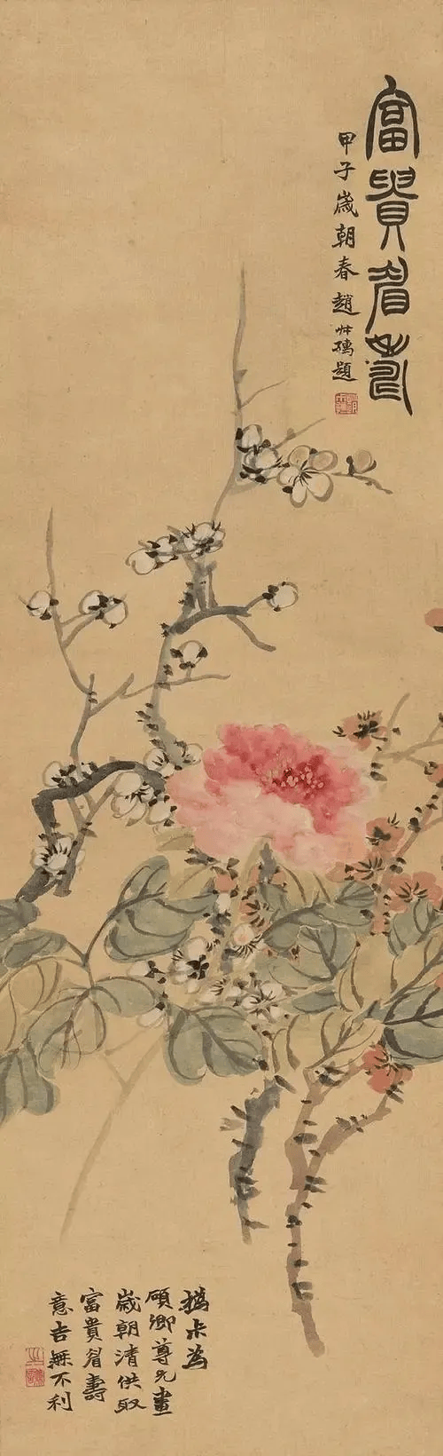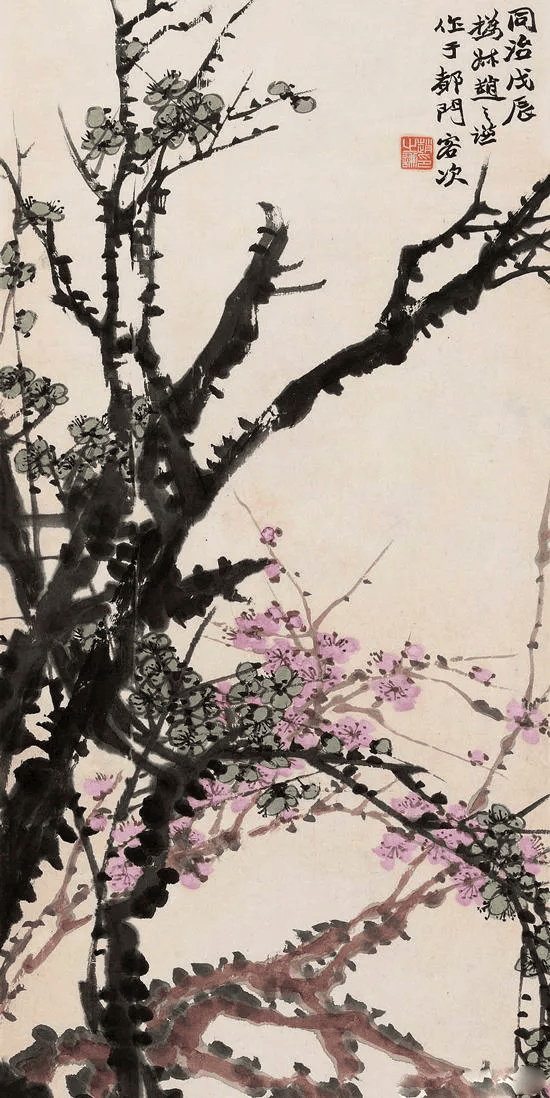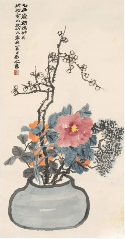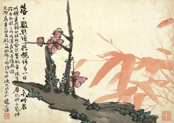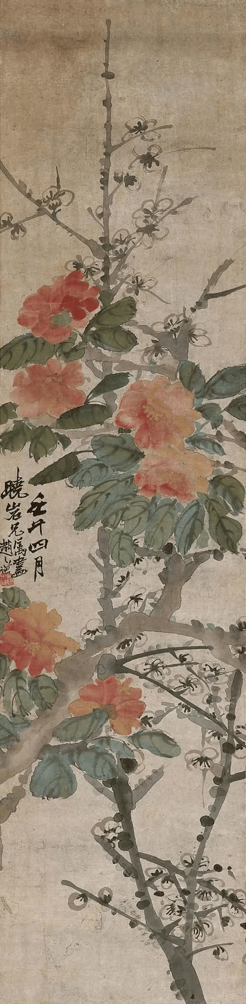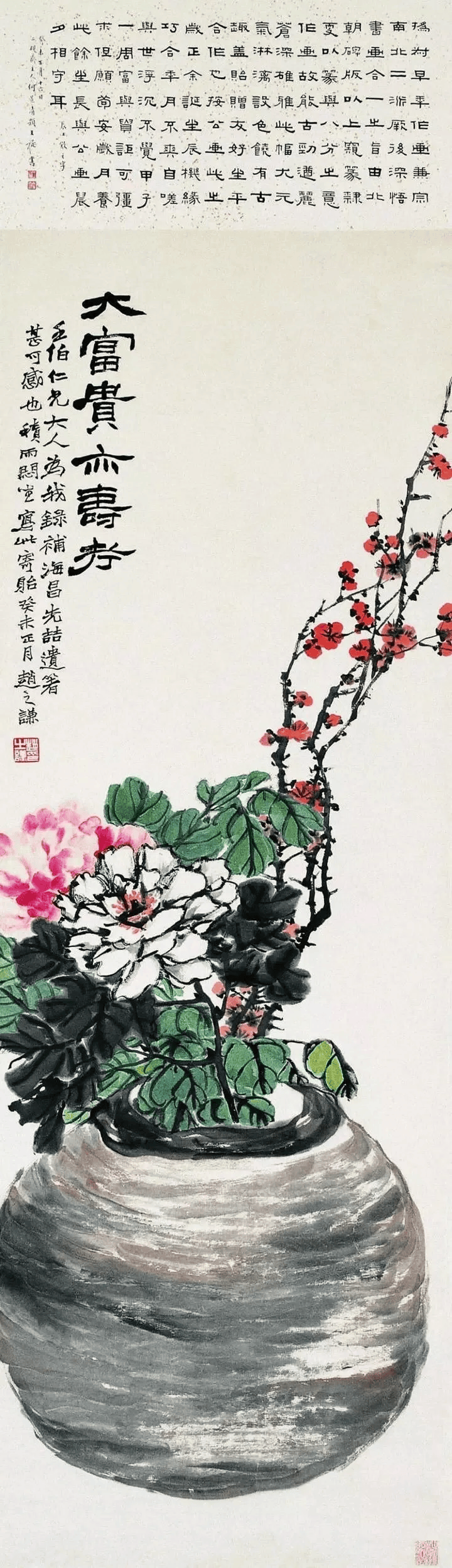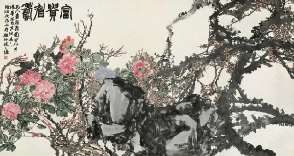 在绘画上,他是“海上画派”的先驱人物,其以书、印入画所开创的“金石画风”,对近代写意花卉的发展产生了巨大影响。