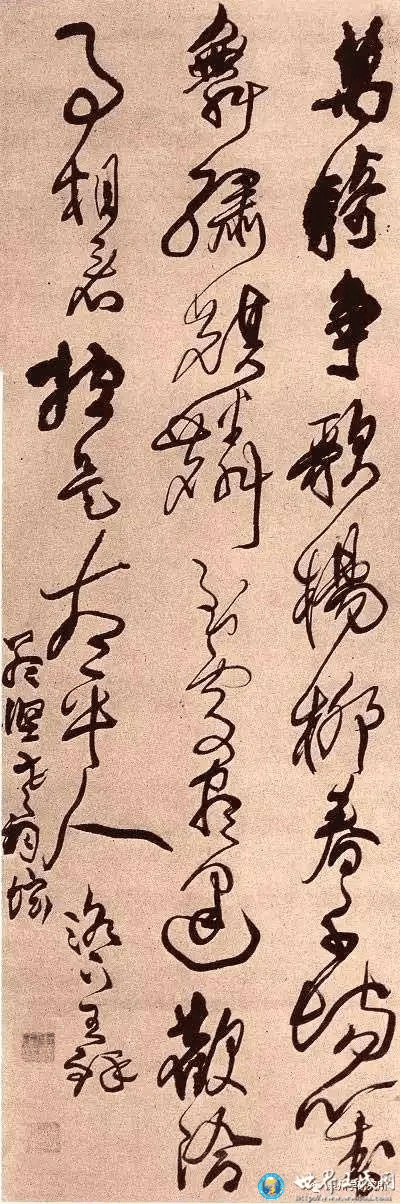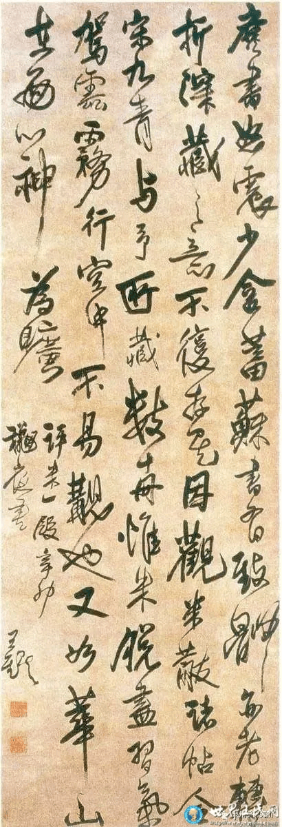 王铎《草书高适七绝万骑争歌杨柳春诗立轴》