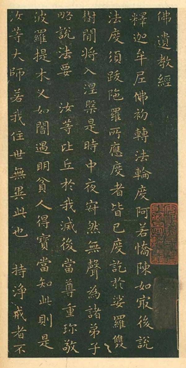 宋代以降,随着刻帖风潮兴起,《佛遗教经》屡被收录。南宋曹士冕《法帖谱系》称:"《遗教经》笔法精劲,诚为右军佳作。"明代董其昌更将其刻入《戏鸿堂帖》,并题跋云:"观其运笔结字,非右军不能。"这些评价既反映了古人对王羲之书风的认知,也强化了该作品的艺术地位。然而,对比唐褚遂良《右军书目》等早期著录,未见此经记载,其突然出现于宋代的现象值得深思。