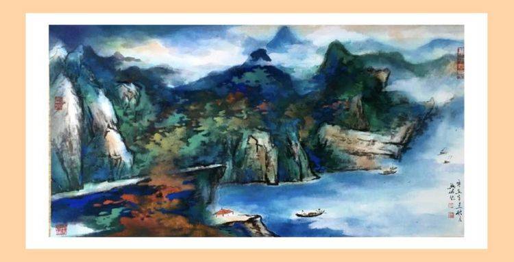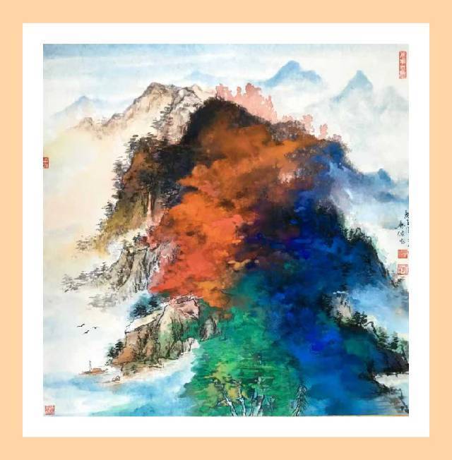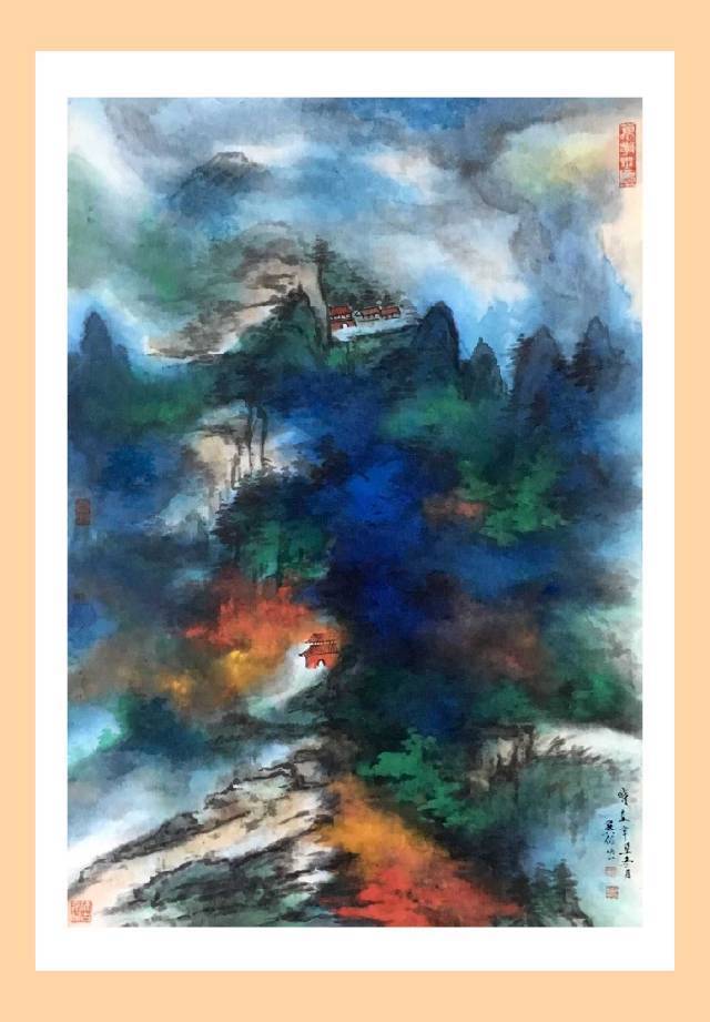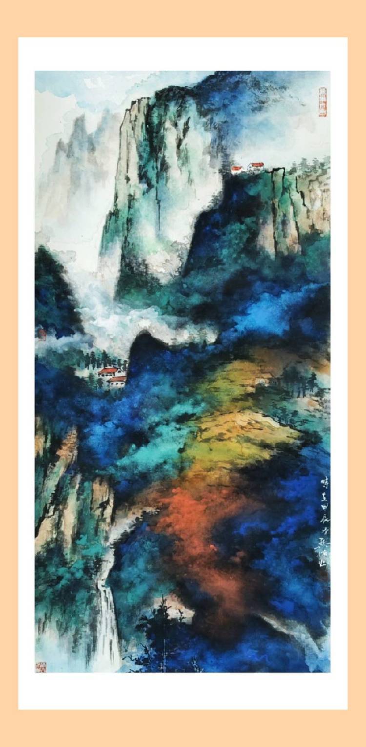 首先他依仗过去所学、所感、所想,开始着眼于中国传统笔墨。他顺着李可染上追黄宾虹、顺着齐白石取法吴昌硕,并取法乎上,探索墨分五彩的笔墨表达方式,然后,他把西方油画的色彩、日本唯美主义的用色方法,以及中国画的墨分五彩统统笼于笔下,进行情景合一的酝酿。与此同时,他在不自觉之间把中国画的具象与意象,把西方油画的写实与抽象结合起来,让具象、意象、写实、抽象在微妙的色彩中各得其真,各得其所,从而使他的泼彩世界晓烟交碧,晨光欲动,骄阳初蒸,崇山如翠。画面之中,具象、意象、写实、抽象,乍合乍离,或聚或散,物态欣愉,神妙如动,既有着中国传统文化与中国山水审美的品位,又有着西方表现主义的浪漫情怀、印象主义的丰富和谐;既带着浓郁的传统文化熏染出来的意境、空间与趣味,又有着向现代审美形态发展的前瞻性。呈现出雄阔、壮美、浑厚、博大、精深的艺术境界,彰显着胸次、学养、才情、功力各臻其妙的艺术状态。