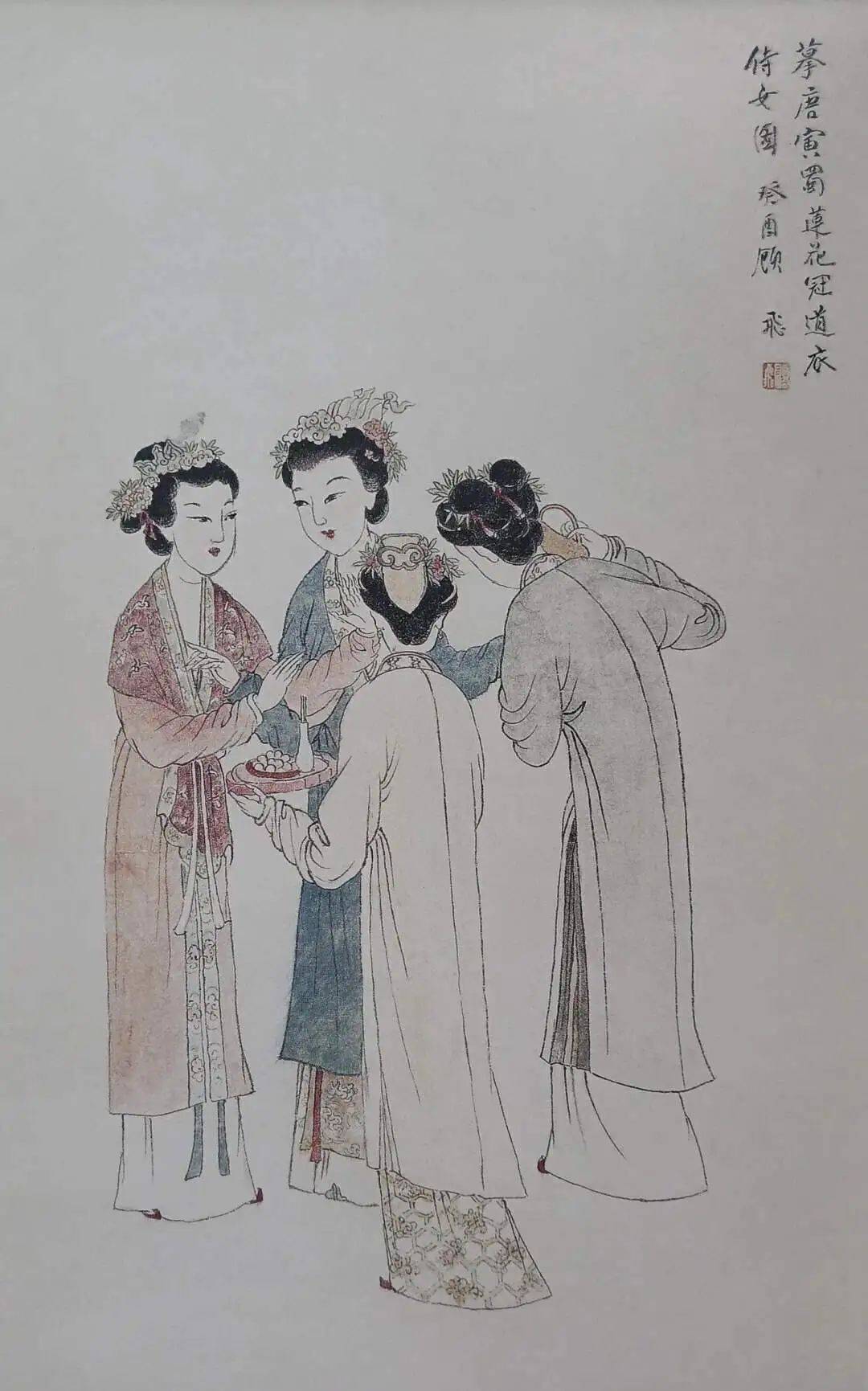 跟张大千学了一段时间,顾飞画仕女愈发上道。