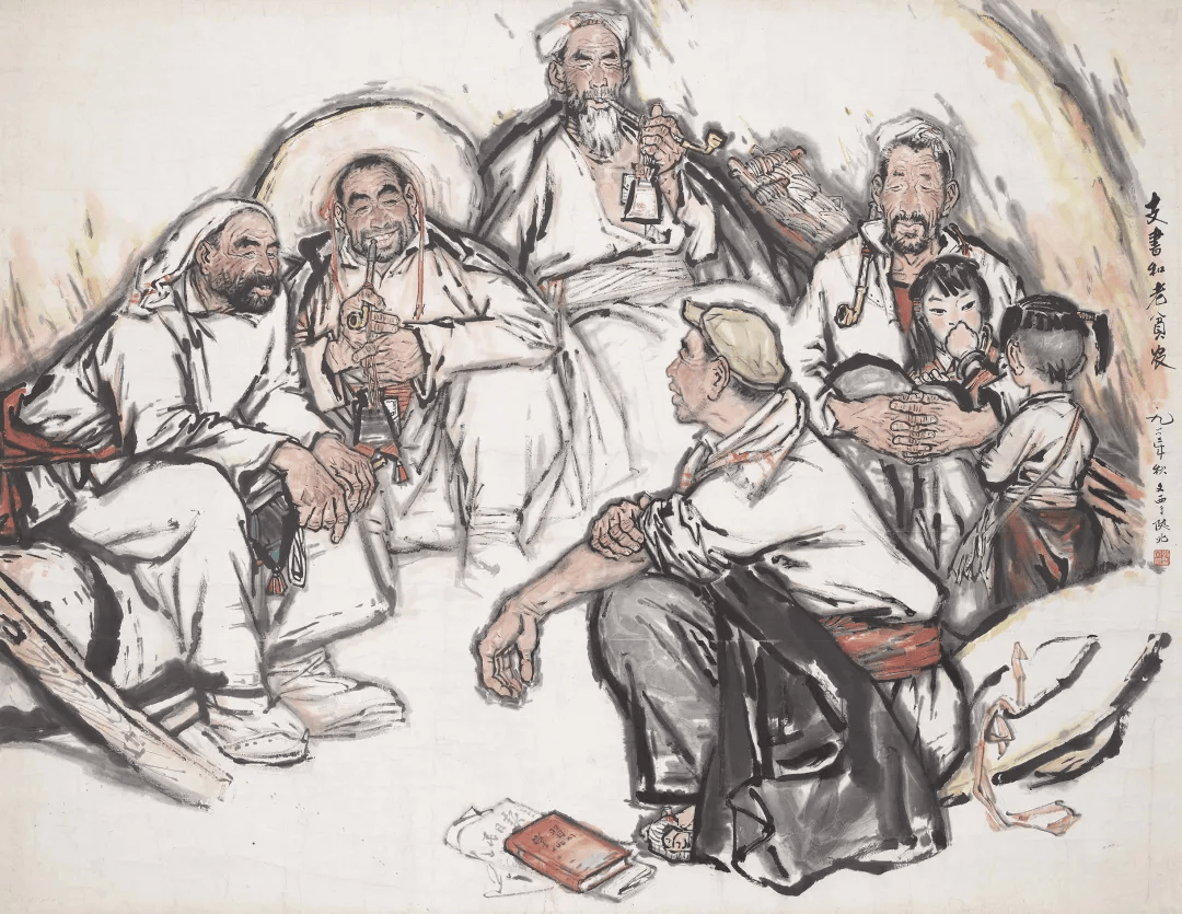 近日,在中国国家博物馆绵延的红色展墙上,集中呈现了这位人民艺术家各个时期的代表作和珍贵文献200余件,“满腔真情绘领袖”“笔墨丹青为人民”“深入生活求创作”3个展览单元,以形似陕北窑洞的空间布局相连通,辅以红、黄为主色调的色彩设计,完美地融合了黄土高原的自然风貌和人文特色,让观众能更深切地感受到艺术家对黄土地以及生活在这片土地上的人民深沉、持久的爱。