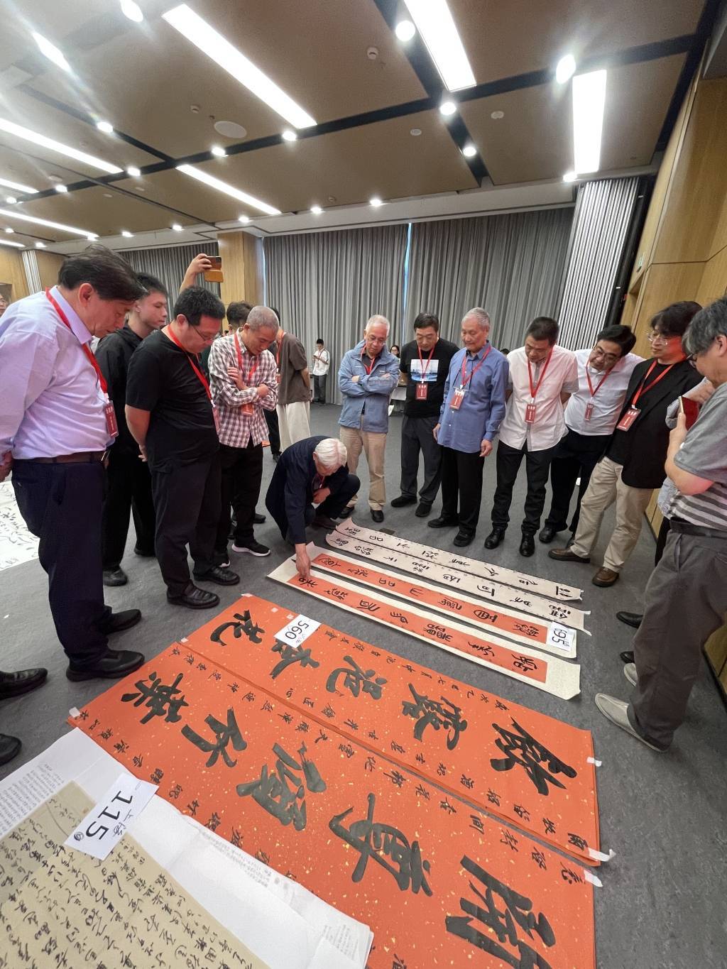 第八届中国书坛中青年“百强榜”终评现场,评委在释读书法作品的文字