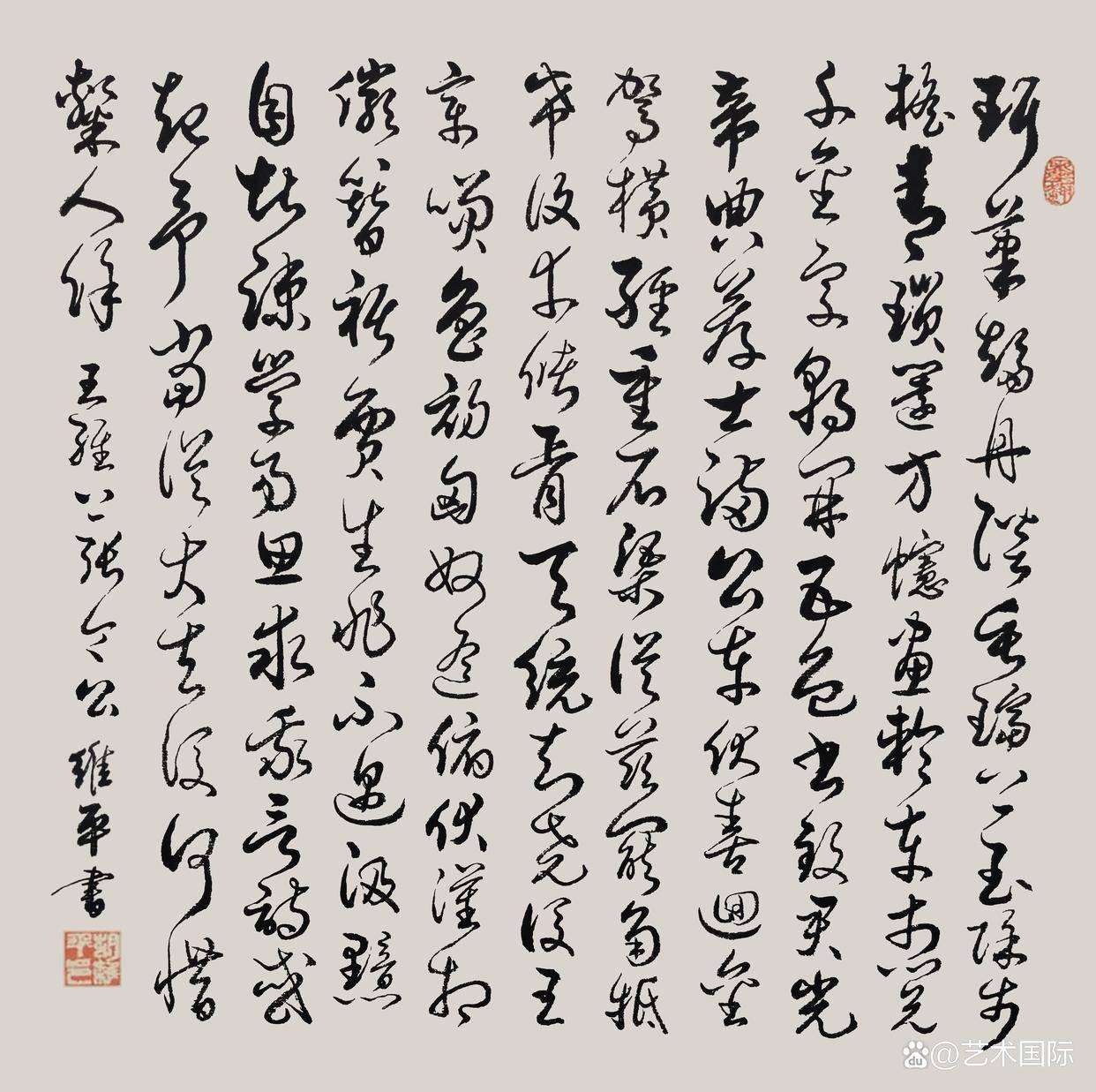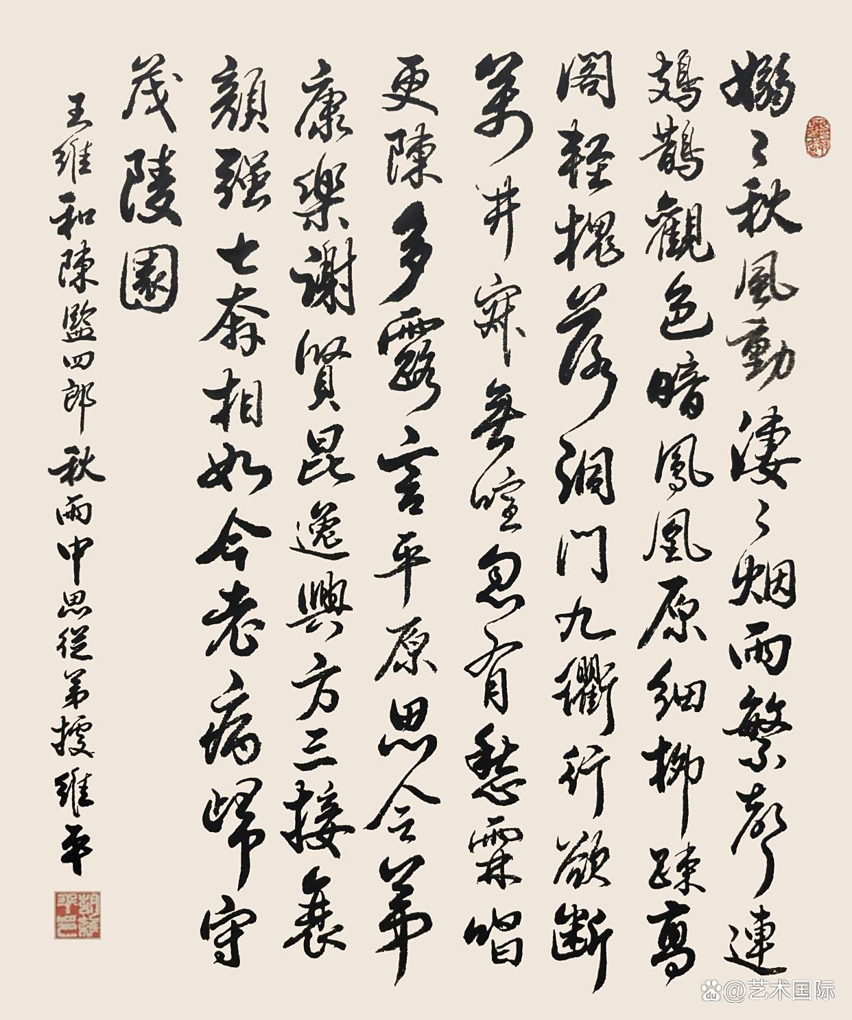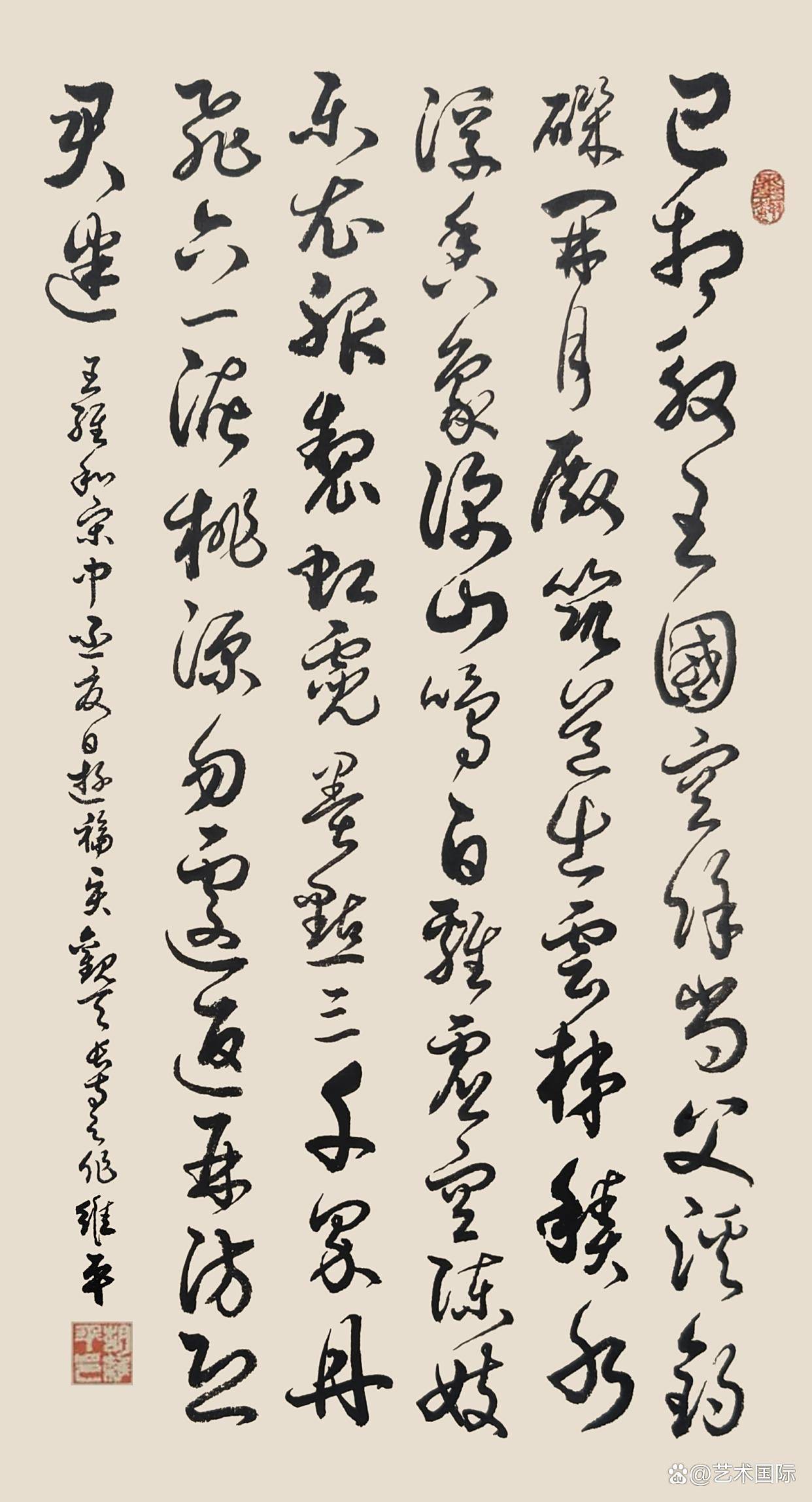 意象营造,是胡维平书法吸引观者的又一关键特质。他宛如一位神奇的魔法师,通过笔墨的巧妙运用,在纸面上构建出一个个独特而迷人的意象世界,让观者仿佛置身于一个充满诗意的梦幻空间。