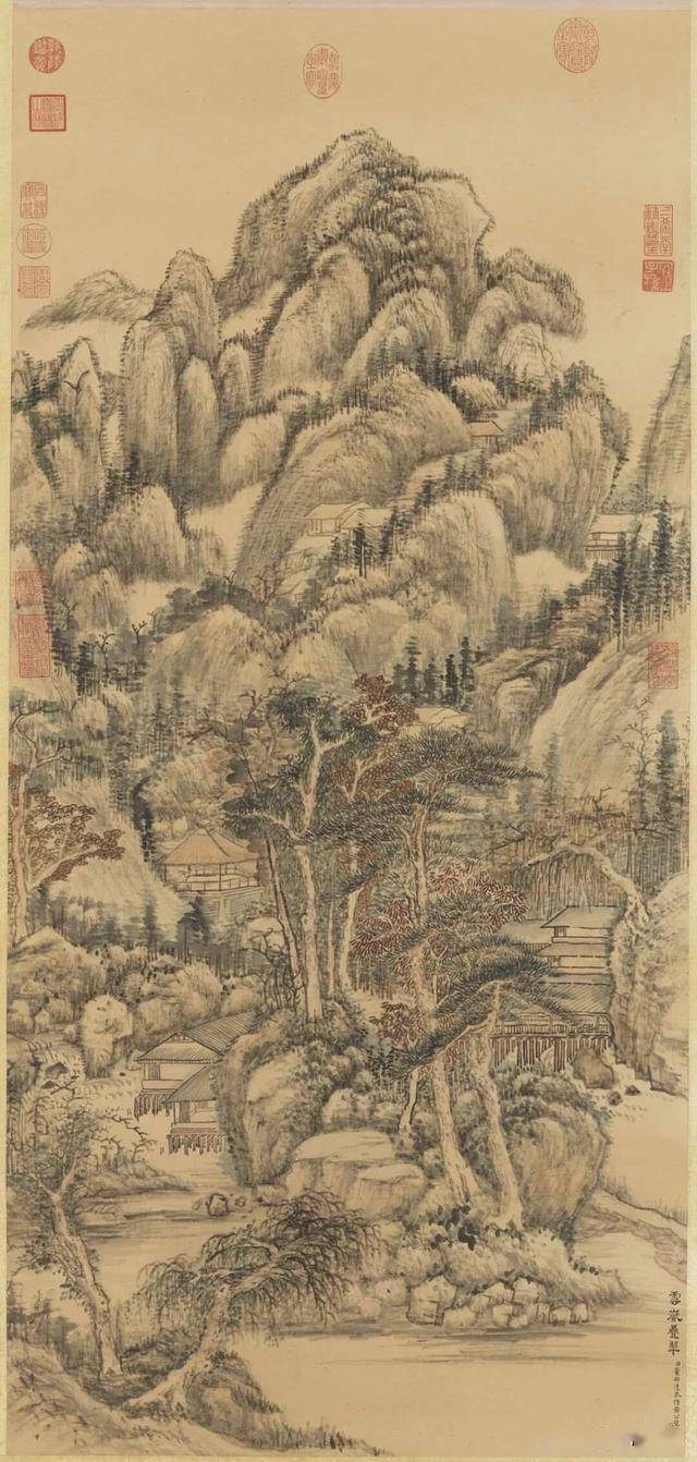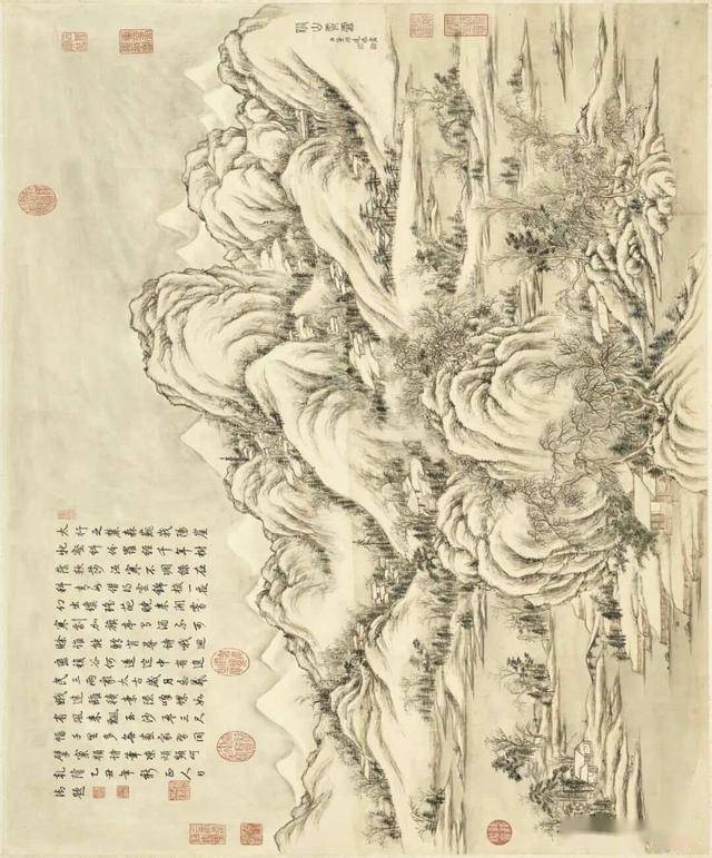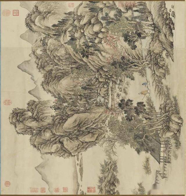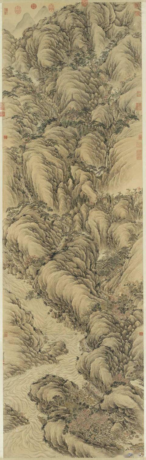 “气”指画面的内在生命力与运动趋势。笔墨的运行具有时间性,每一笔皆有起承转合,形成“笔踪”。如王原祁作画,强调“龙脉”布局,其山体走势如龙蛇蜿蜒,笔墨连贯,气脉贯通。这种“气”的流动,使静态画面具有动态势能。