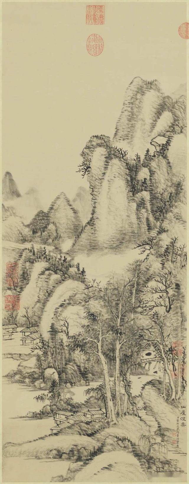 笔法与墨法的结合,使山水画在二维平面上实现多维度的视觉建构。线条界定结构,墨色营造氛围,二者共同完成“形”与“神”的统一。