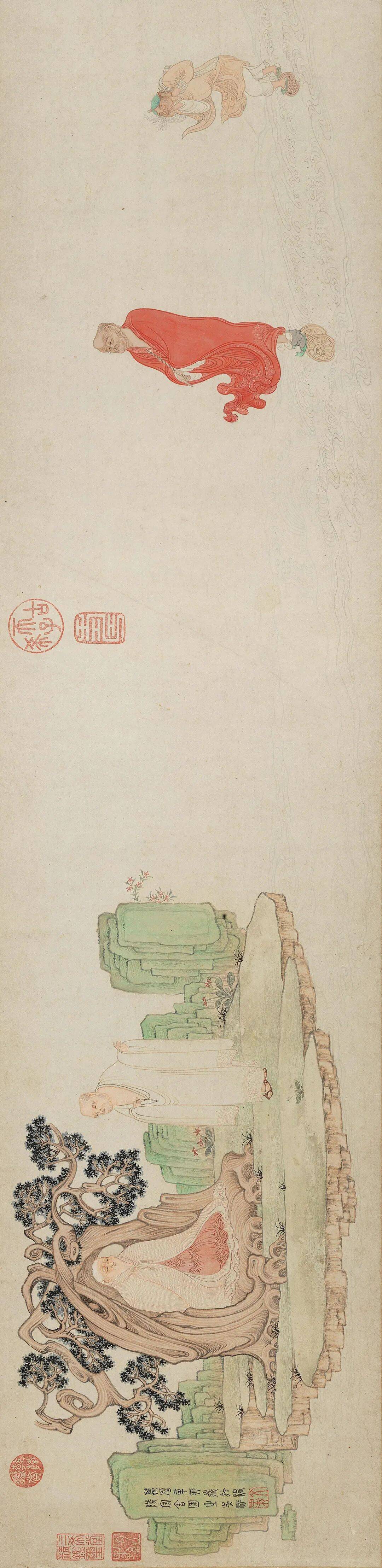 《十六罗汉图》是吴彬传世最早的作品之一,他以造型古怪的拟古之笔绘画人物,对明末人物画家影响深远,比如著名的画家陈洪绶(1599-1652)和一些版画画家。