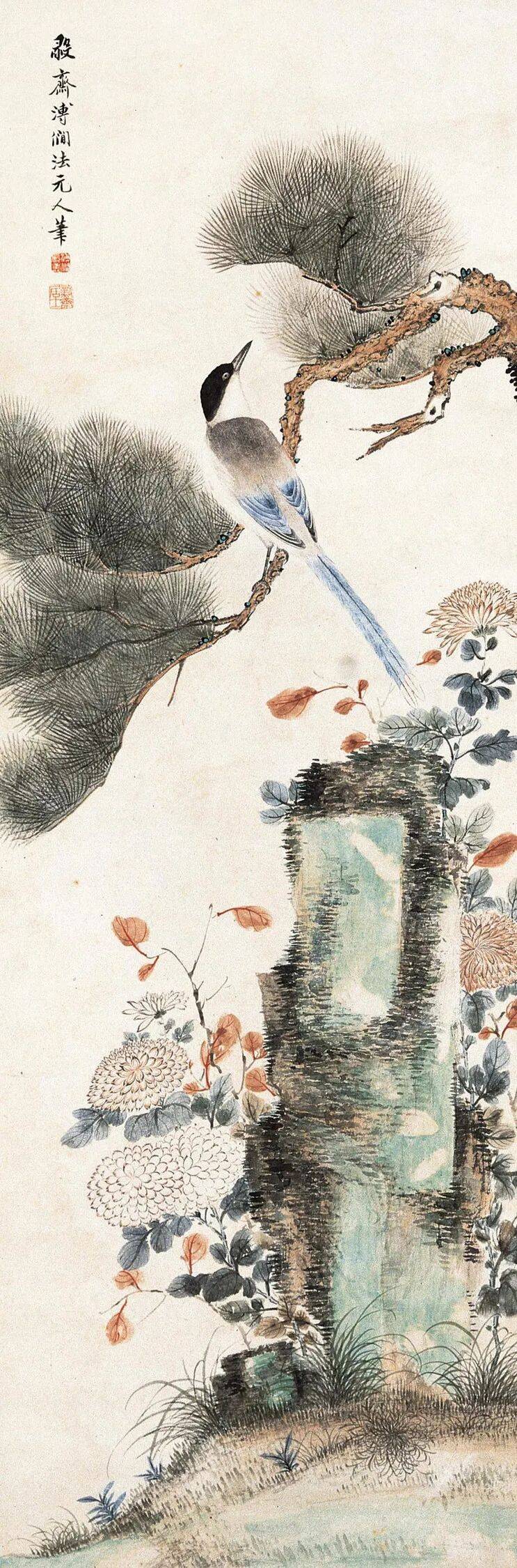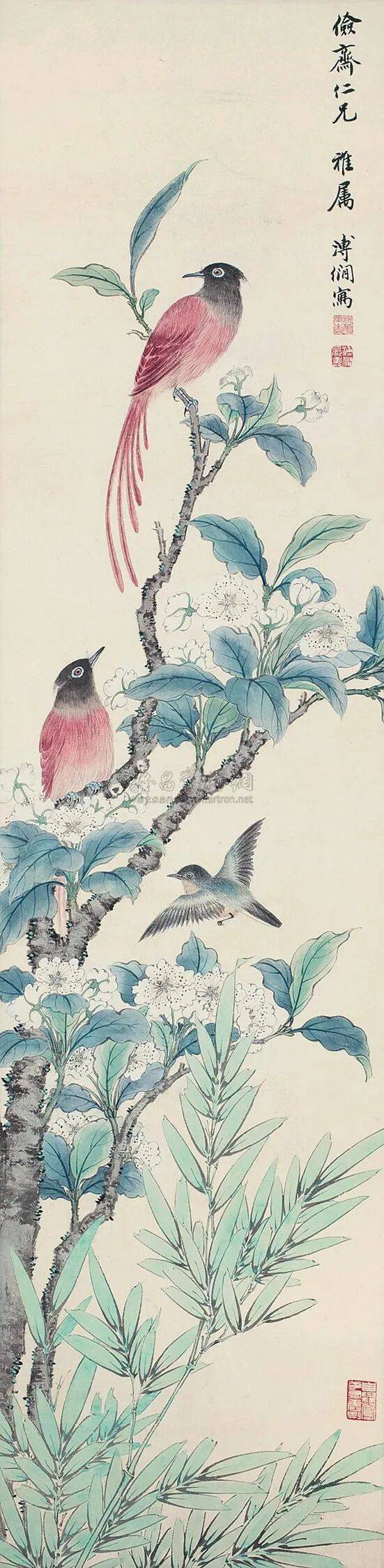 溥僩,字毅斋号松邻。惇勤亲石奕淙(道光帝旻宁第五子)之孙、贝勒载瀛(奕淙第四子)第五子。袭固山贝子爵。自幼受父兄熏陶和影响,勤习书画,16岁始正式作画,即身手不凡。1925年,兴其兄伯溥苫、其弟溥僩、族人启功和关松房、祁井西等人组织“松风画会”,名誉鹊起,后曾专以卖画为业。善绘花鸟、山水,尤以工笔花鸟书见长,风格清新儁朗。