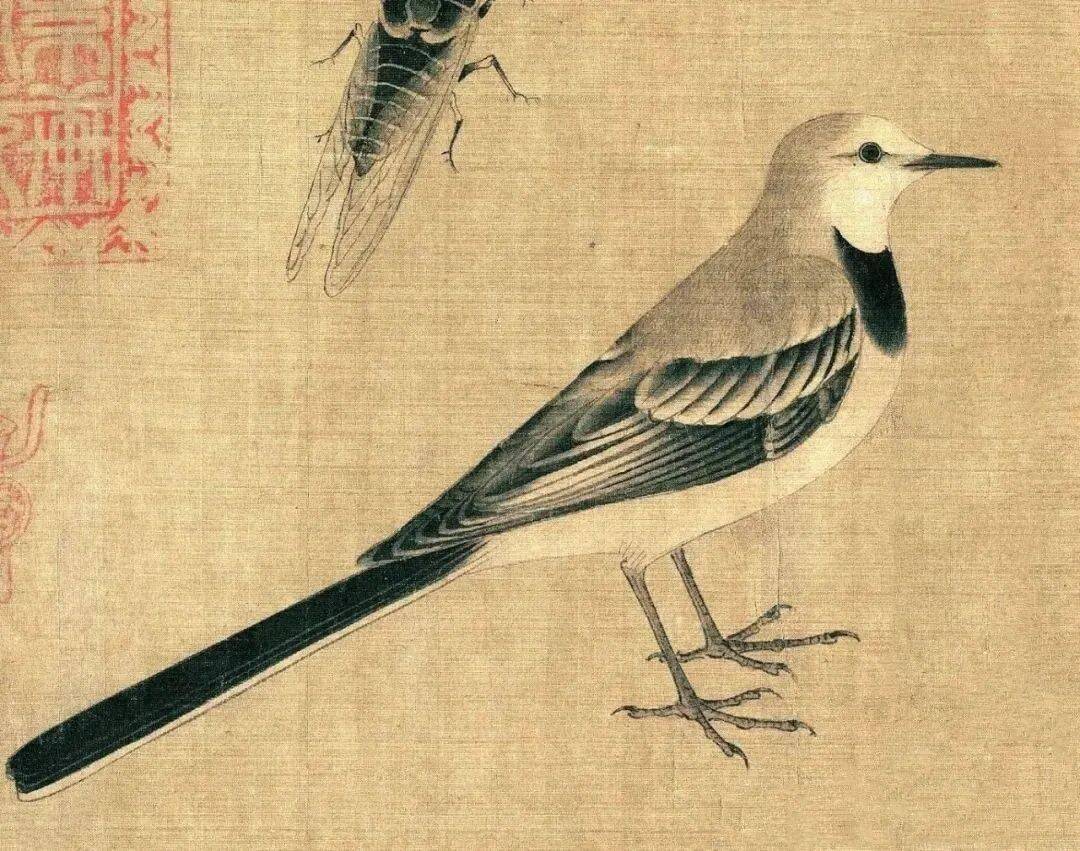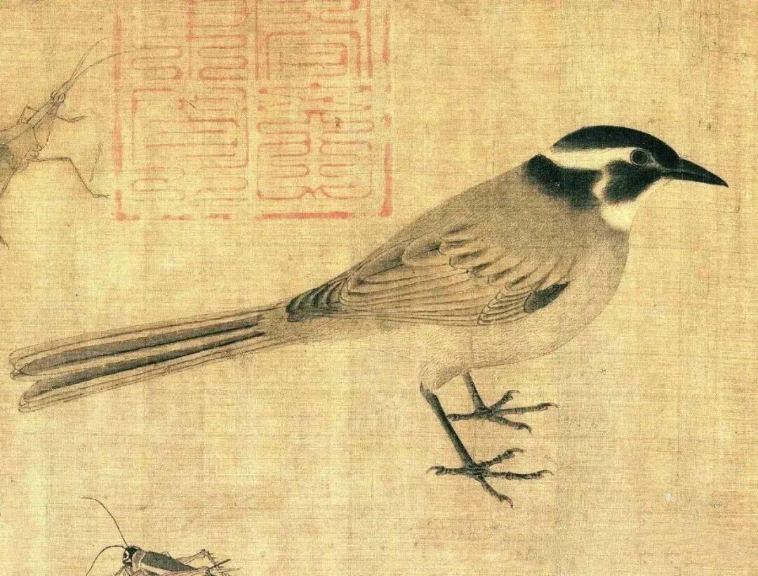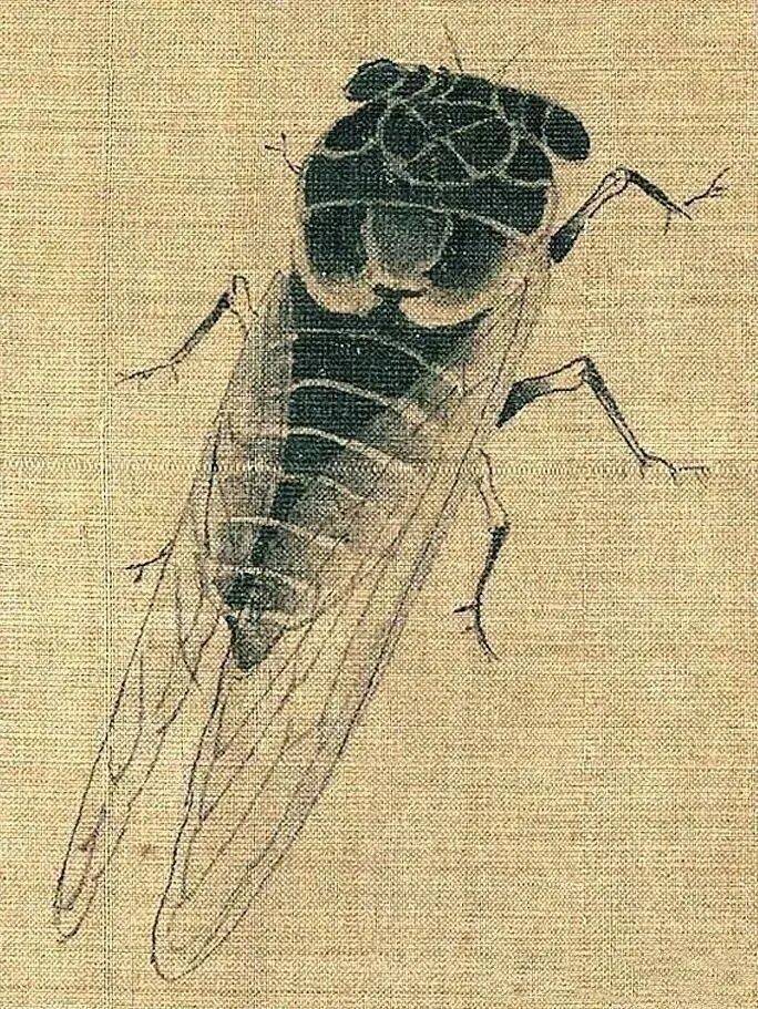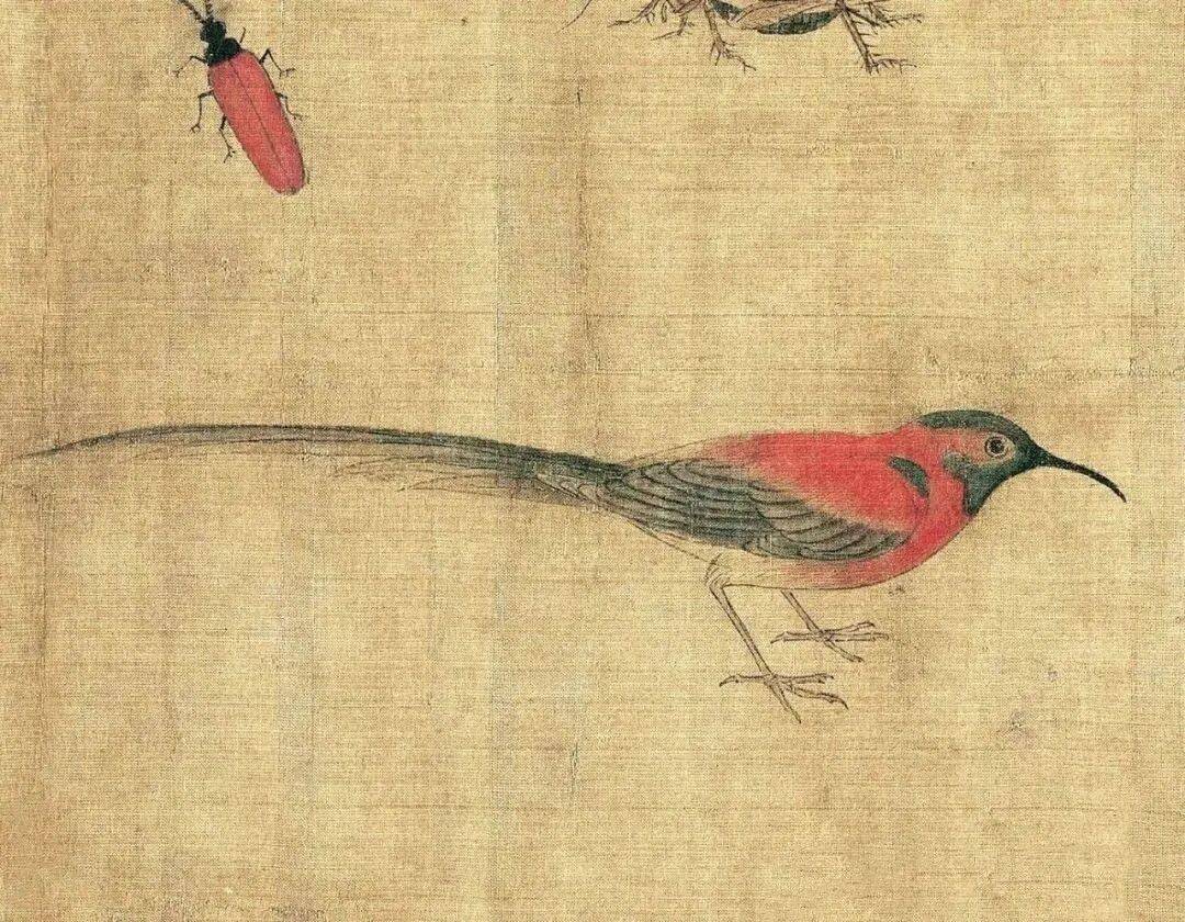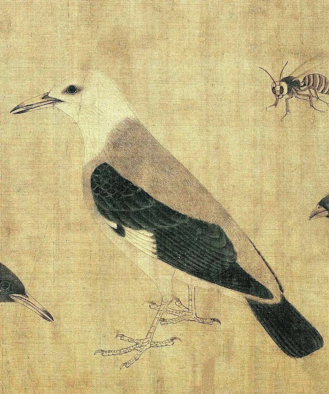 画家在不大的绢素上画了知了、蚂蚱、天牛、马蜂、蜜蜂、画眉、麻雀、白头翁等昆虫、小鸟。即使是这样的稿本,亦能看出黄筌作品之精妙,可见他长期观察自然、坚持写生所积累的功力之深厚。现在这件画稿收藏于故宫博物院,已成为传世名品。