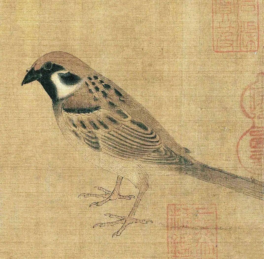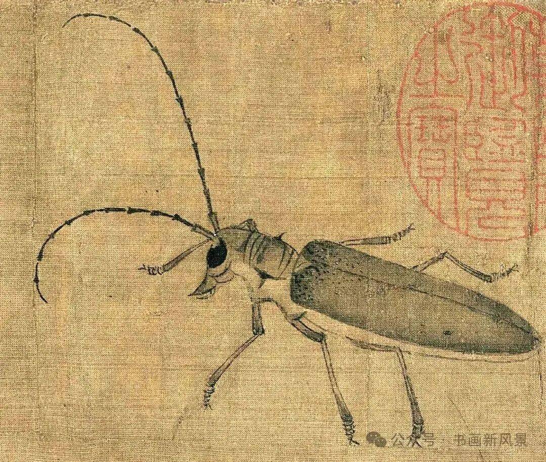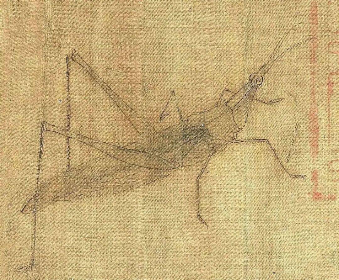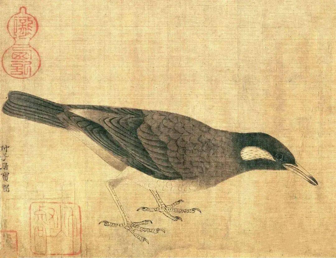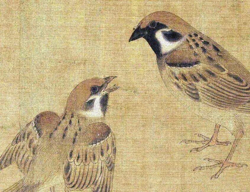 画家在不大的绢素上画了知了、蚂蚱、天牛、马蜂、蜜蜂、画眉、麻雀、白头翁等昆虫、小鸟。即使是这样的稿本,亦能看出黄筌作品之精妙,可见他长期观察自然、坚持写生所积累的功力之深厚。现在这件画稿收藏于故宫博物院,已成为传世名品。