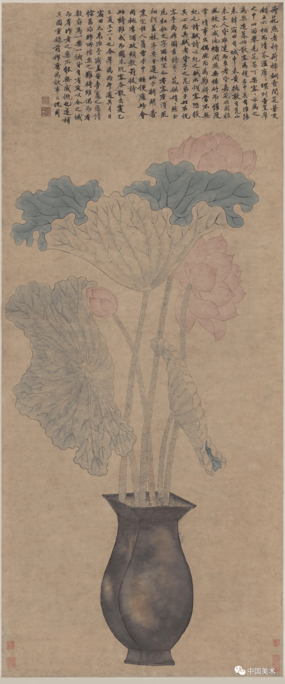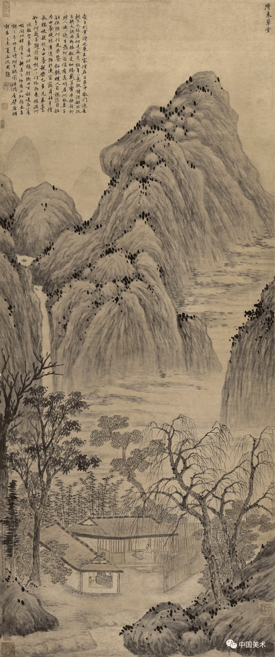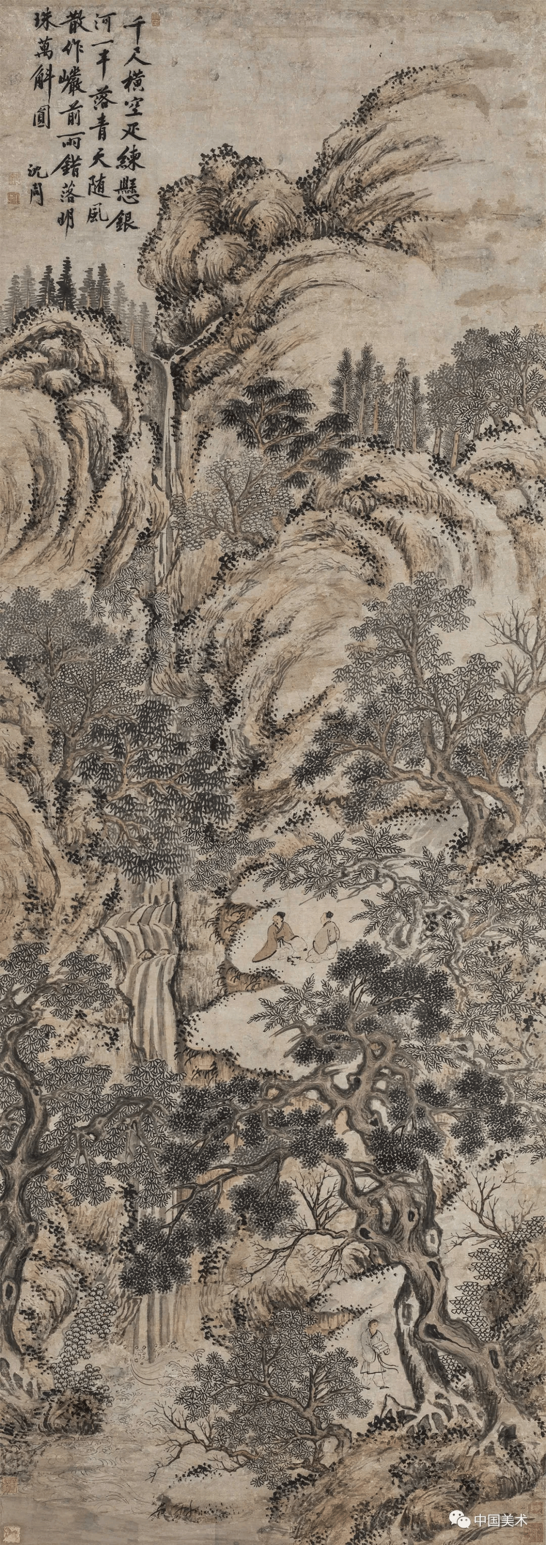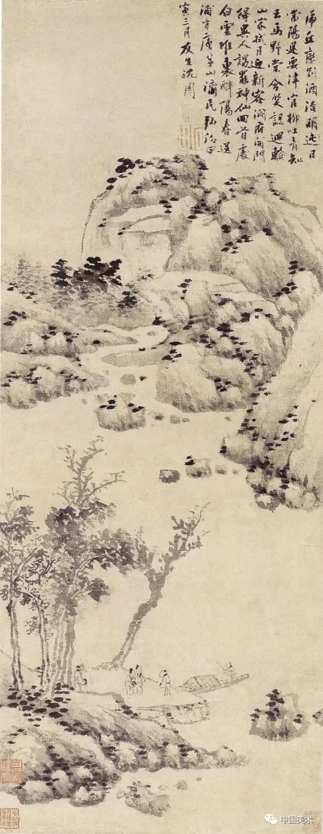 吴门四家中的沈周与文徵明,是吴派文人画最突出的代表,他们的绘画创作以山水为主,无论淡雅的青绿,还是沉雄、文秀的水墨,大多描写江南风光和文人园林。他们以诗书画三位一体抒写情怀,山水画以水墨及水墨淡着色引人注意,都有粗细两种面目。
