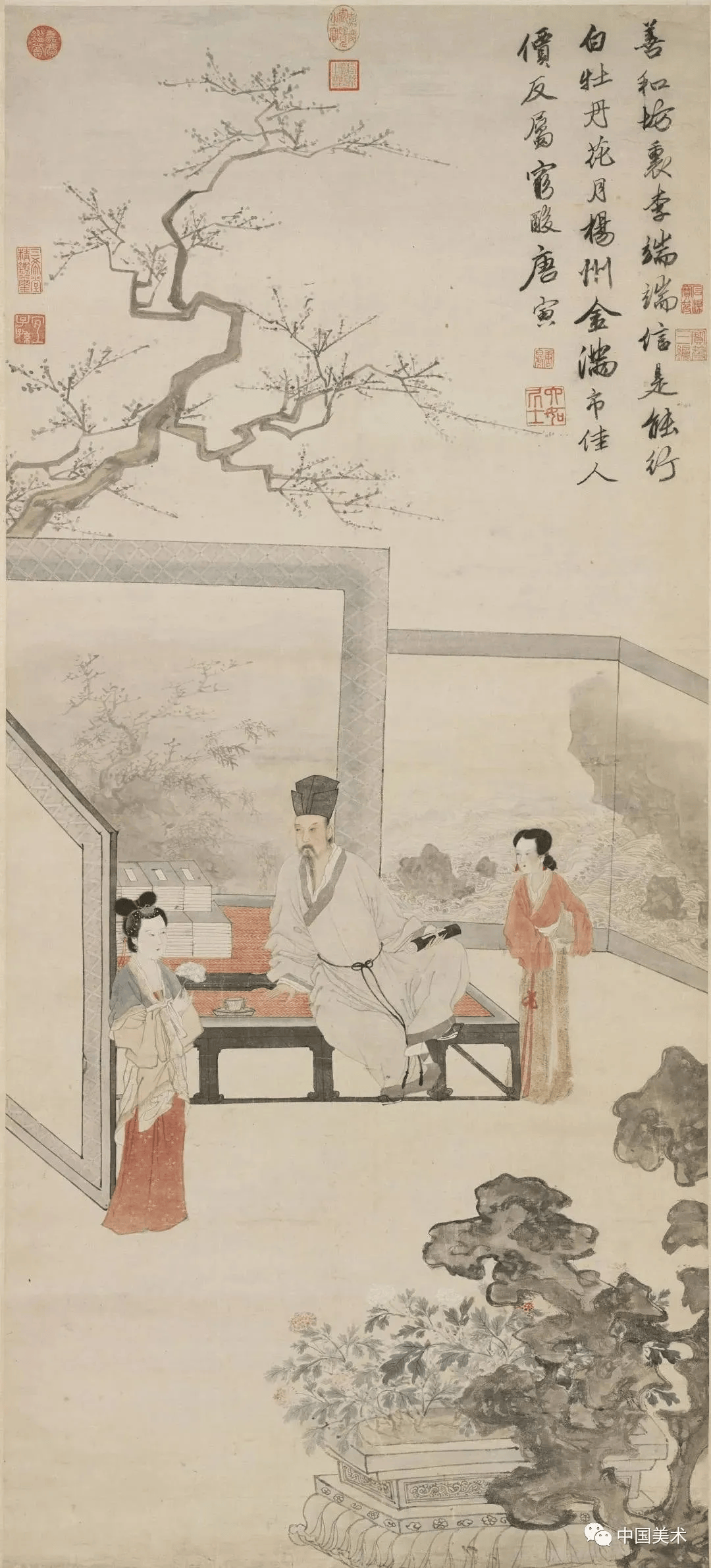 吴门四家中的唐寅与仇英分别代表吴门四家中的另外两种类型:唐寅修养广博,诗书画俱佳,号称“江南第一才子”。他阅历较广,入世较深,故题材范围宽广,古今皆能,不拘一格;仇英文化修养不博,专画传统题材,但摹古功底深厚,尤擅长工笔重彩人物与青绿山水,作风严谨不拘。