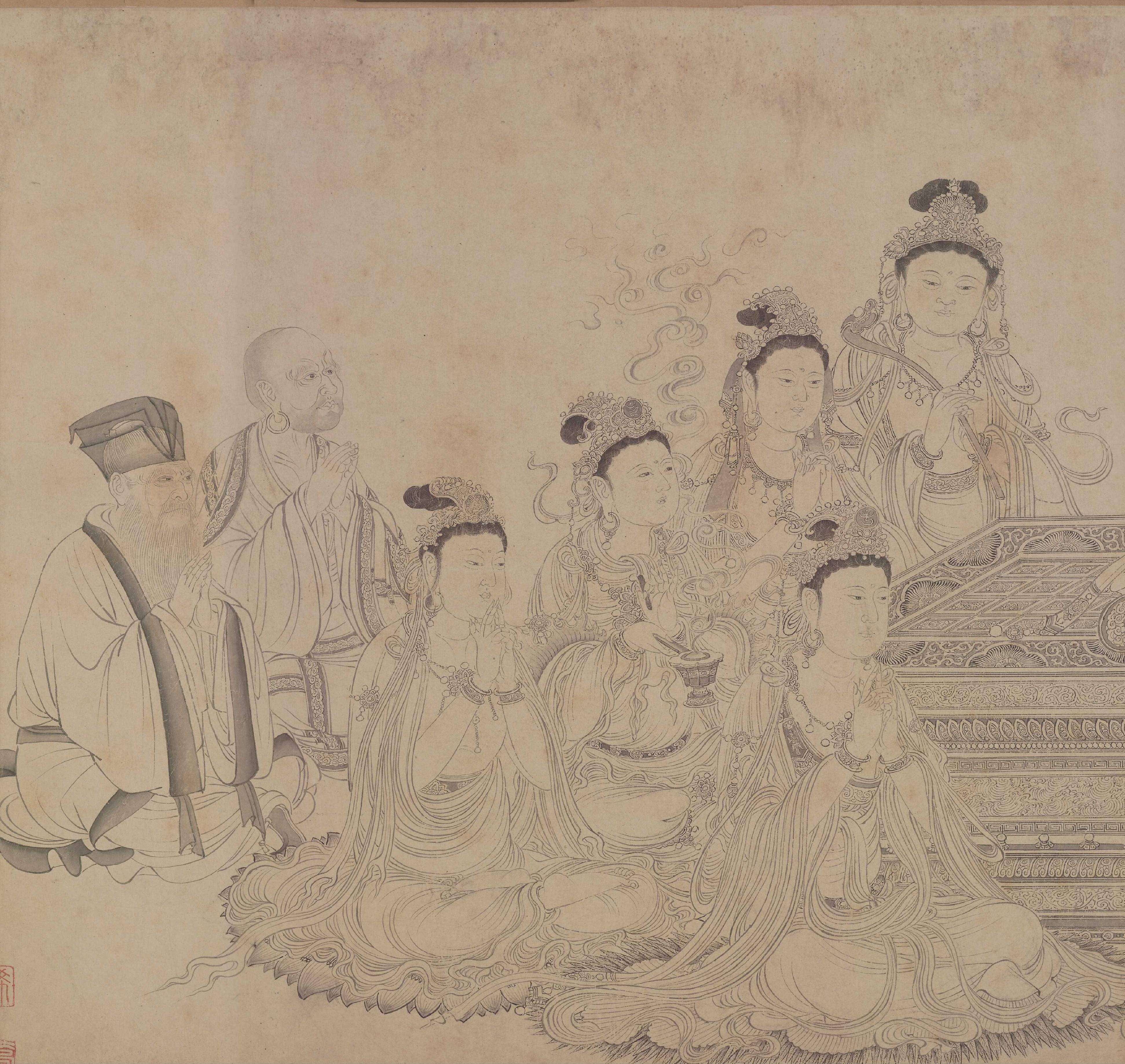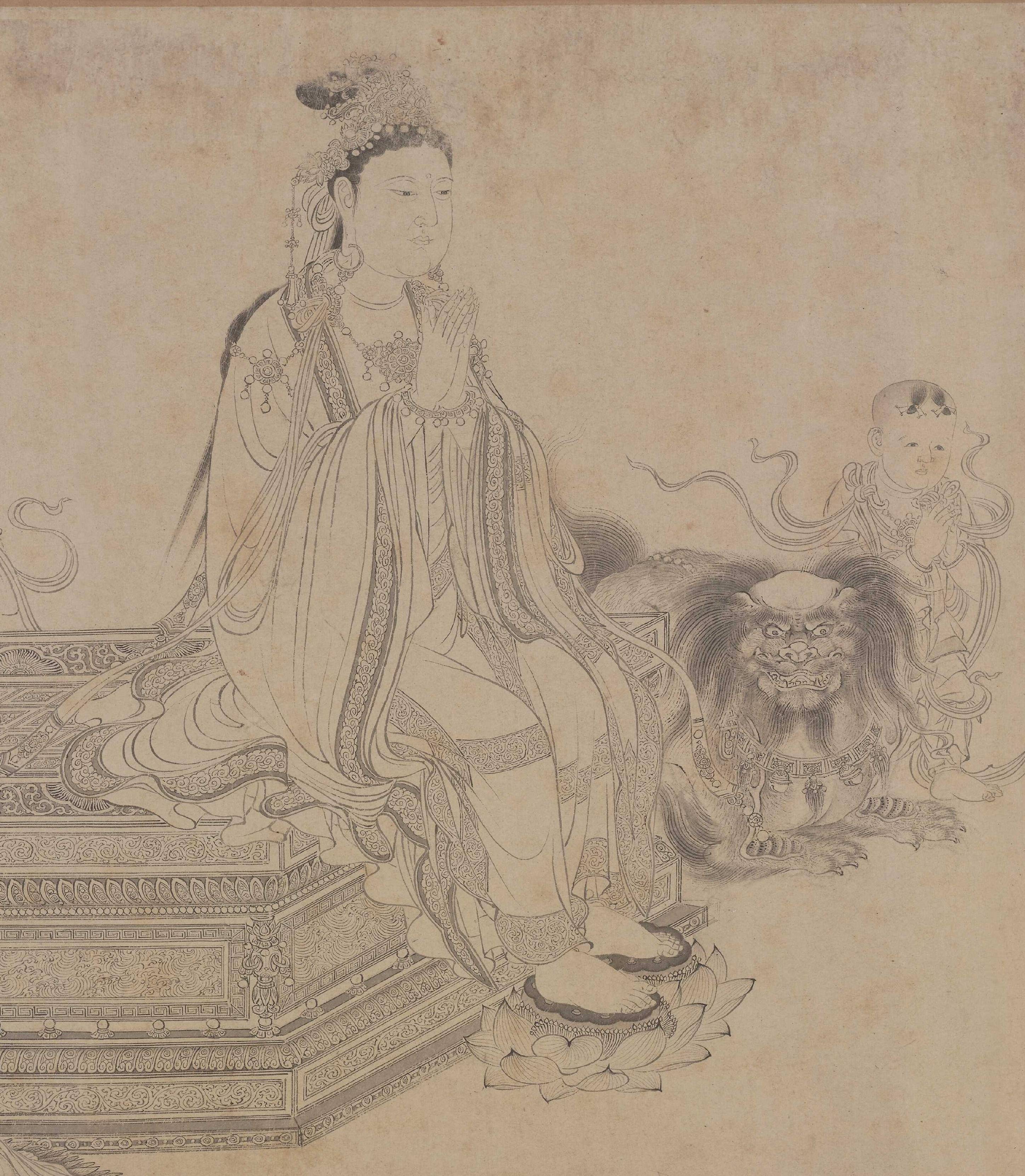 他笔下的《石上卧观音》盘腿而坐、双手合十,却呈现出自在从容的样子。世人总把随意的坐姿当作自在,但在李公麟看来,“自在在心,不在相也”,他追求的是人物内在心性的清明自在,这种对内在精神的关注,与禅宗明心见性的思想一脉相承。观音图虽已失传,但他将佛像从宣教转向文人意趣表达的创作理念深刻影响了后世。