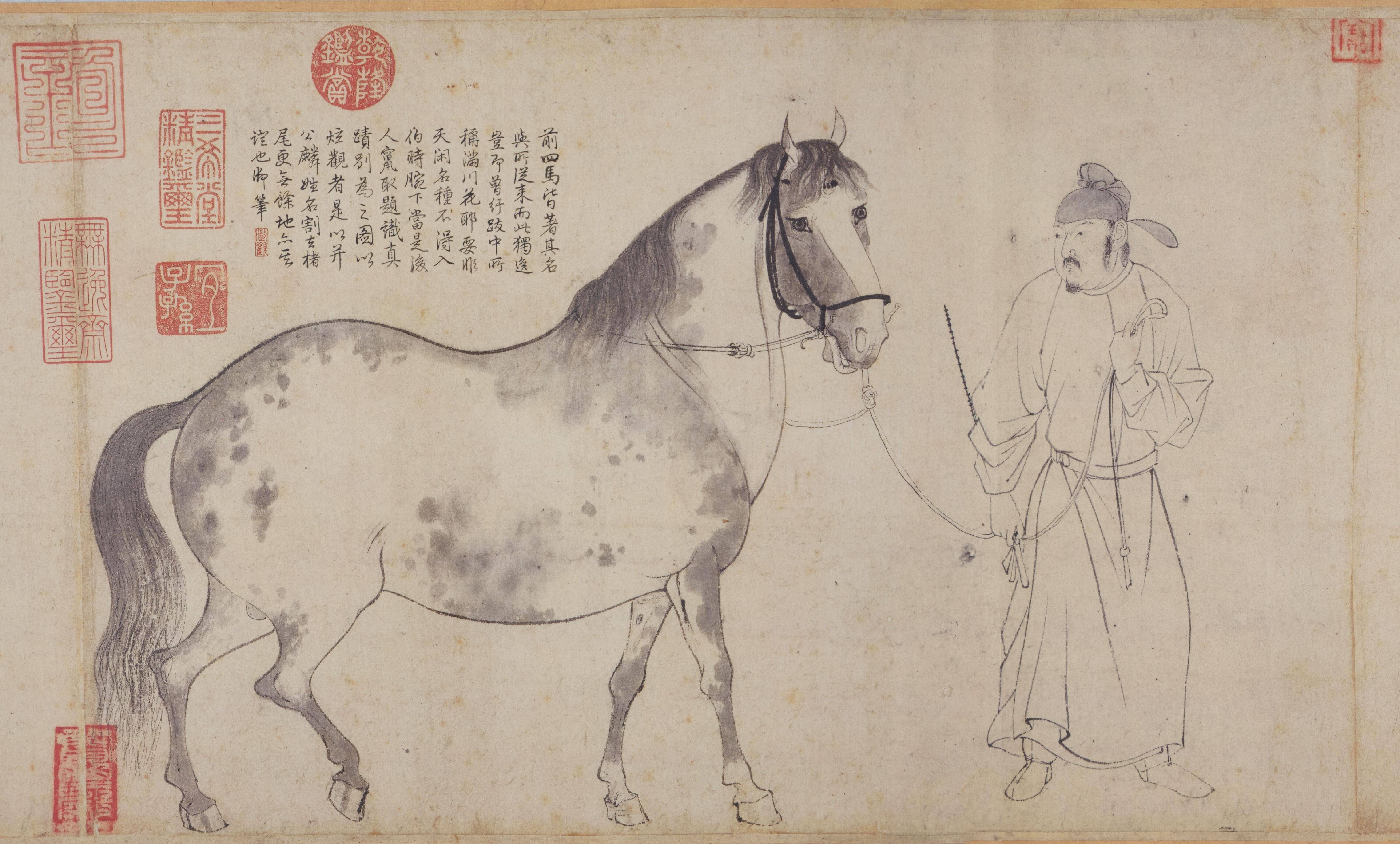 文博时空 作者 朱紫璇 北宋元祐年间,于阗向朝廷进贡了一匹名唤“满川花”的骏马,神骏非凡,被收入御马苑。画家李公麟听闻后,特意前去连日细心观察,并以水墨白描将其绘入《五马图》中。可谁也没料到,画卷刚成,满川花竟猝然倒地,没了气息。李公麟的好友黄庭坚直言:“异哉,伯时貌天厩满川花,放笔而马殂矣。”这一“画杀满川花”事件在宋代文化圈广为流传,甚至导致马夫惶恐不安,他们生怕李公麟再画其他名马,会将其魂魄也“并为神物取去”,纷纷恳求他不要再画了。