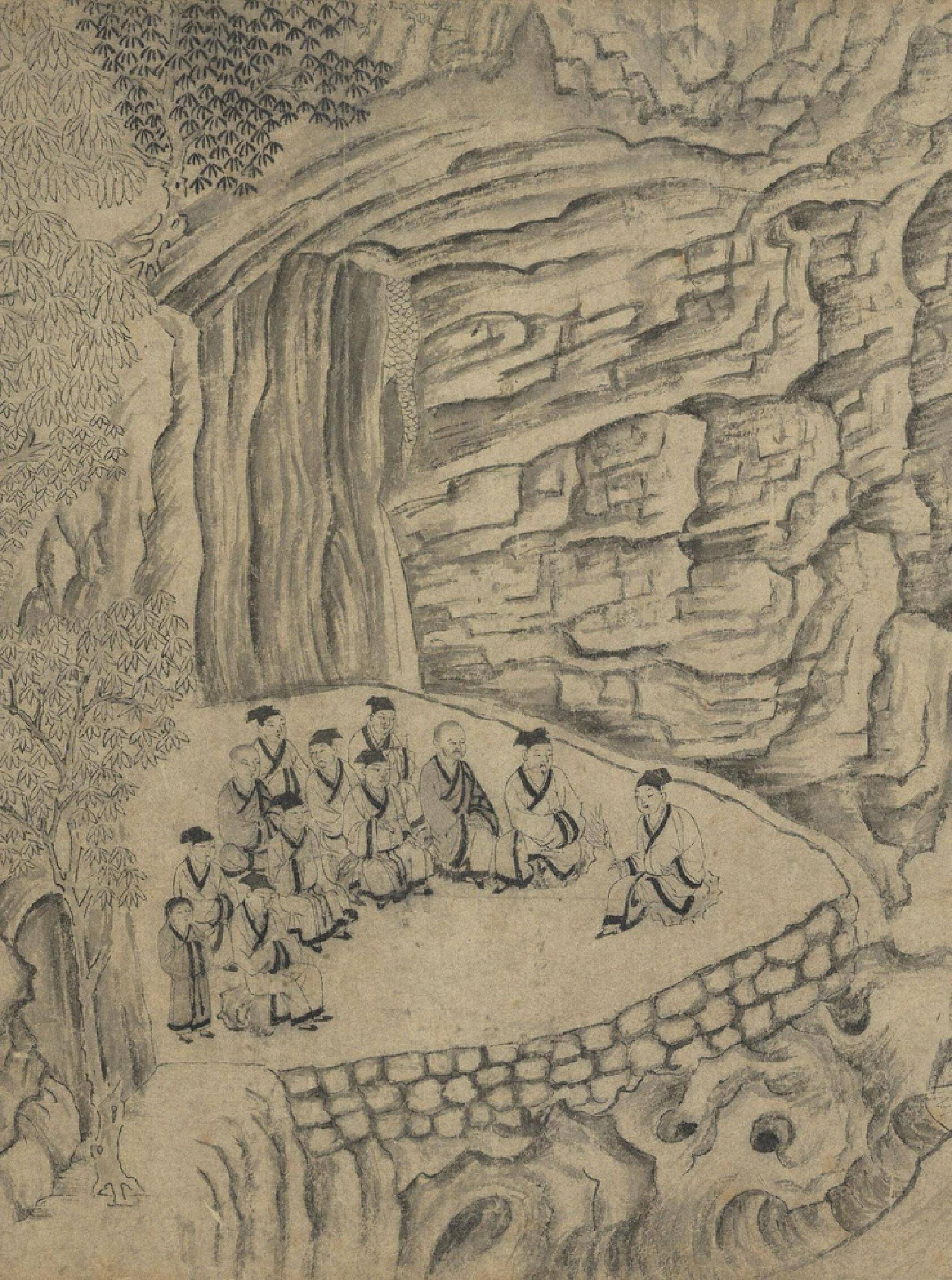 除了苏轼,李公麟还与黄庭坚、米芾等文人名士交好,他们还一起参加过北宋文化史上的盛会——西园雅集。在驸马都尉王诜的西园中,李公麟与苏轼、黄庭坚、米芾、秦观、晁补之、张耒等十六位文人雅士齐聚。李公麟绘制的《西园雅集图》正是记录了这一盛况,图中众人或挥毫泼墨,或抚琴听松,或谈禅论道,或观画品古,各具情态。