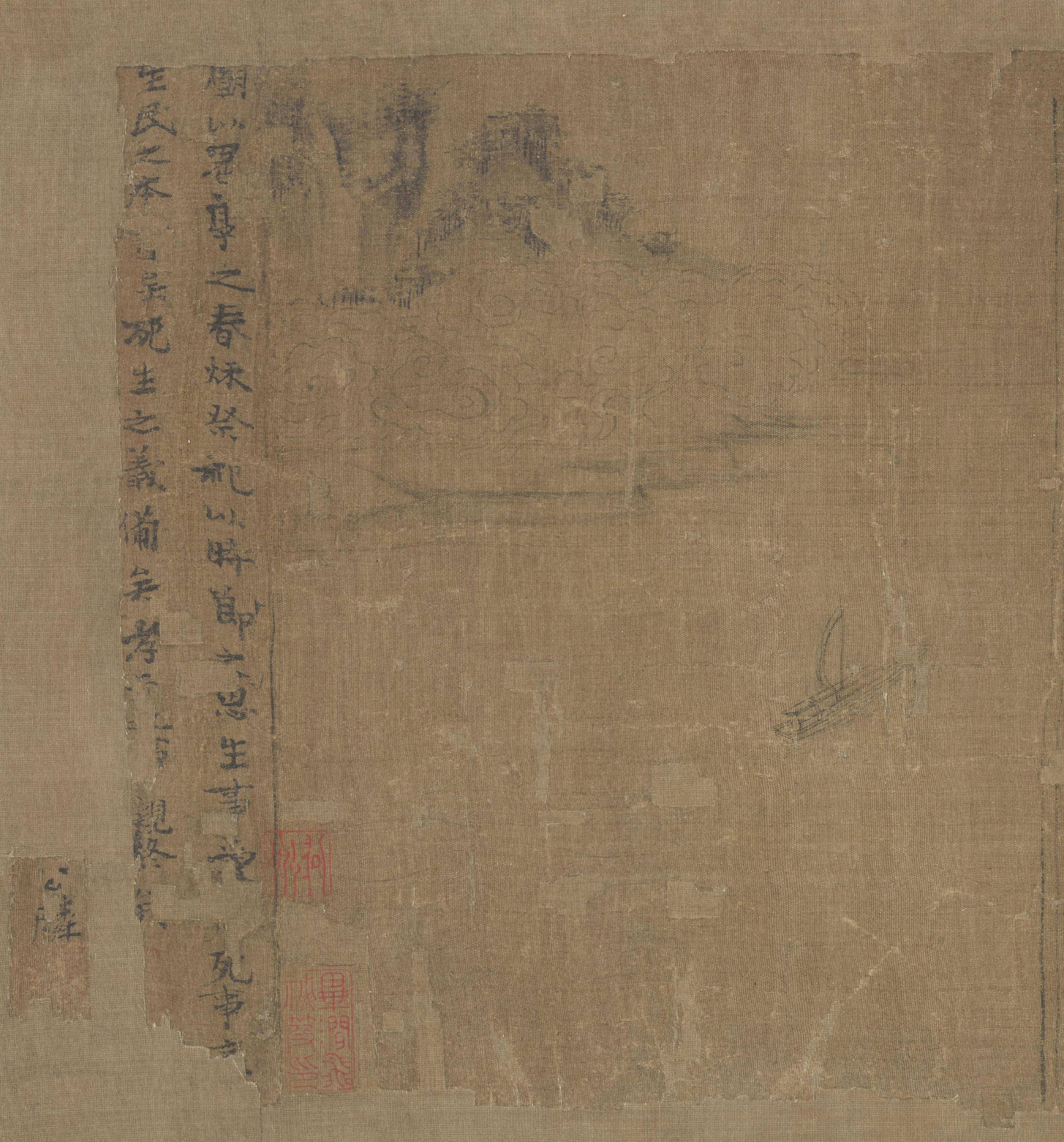 在《归去来兮图》中,画的重点不在田园松菊,而独取“临清流处”,以空阔的水面隐喻隐逸心境。还有《孝经图》中的丧亲章,画中没有因失去亲人而悲痛欲绝的人物,只有一叶孤舟在云山下飘着,水面用虚笔扫过,连波纹都很轻,一如孝子空荡的内心和孤寂凄凉的愁情。 这种以少胜多、以无胜有的含蓄表达,正是文人画“重意轻形”审美理念的体现。