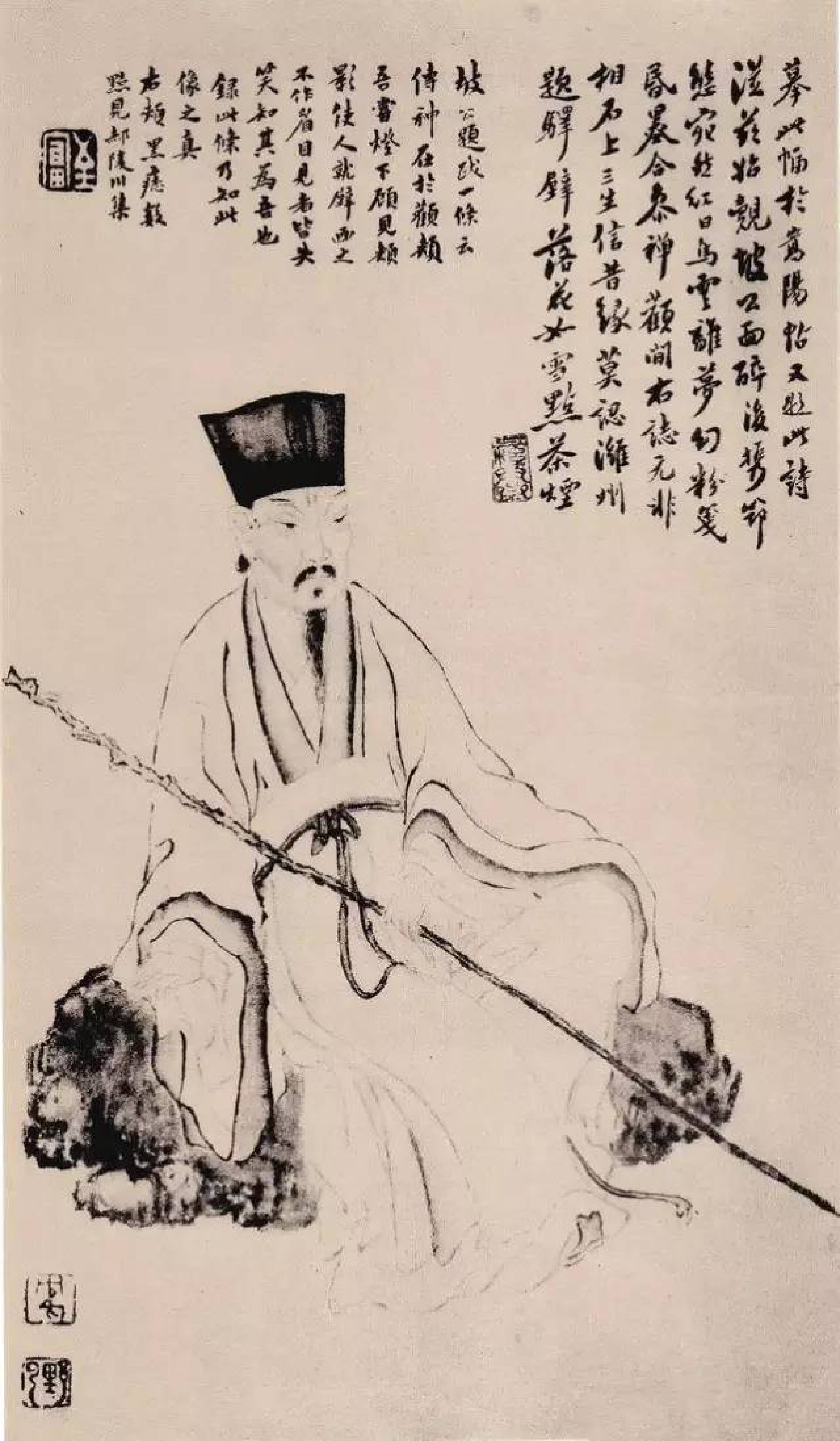 李公麟与苏轼的交情尤为深厚。元祐年间,苏轼在朝中任职,与李公麟交往紧密,两人频繁合作书画,一起给柳子文画《松石图》, 后来又合作了《憩寂图》,由苏辙题诗、苏轼作跋,堪称诗书画合璧的典范。李公麟还多次为苏轼画像,其中《按藤杖坐盘石像》最为传神,黄庭坚称赞其“极似其醉时意态”。