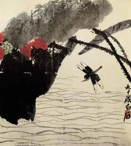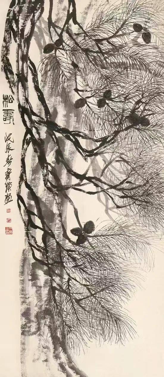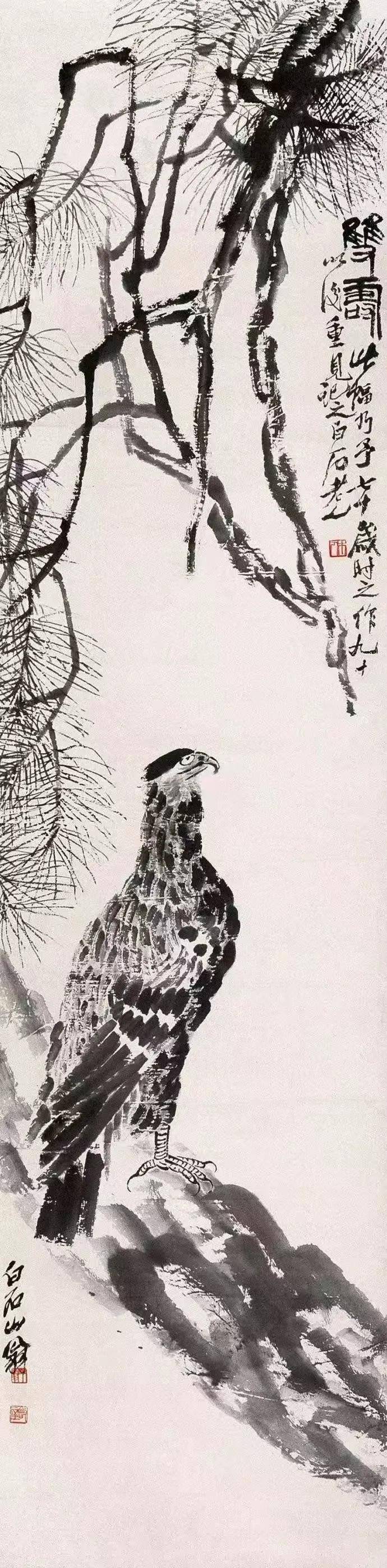 白石先生的“意趣”,不止于形,更在笔外之境。画残荷,枯梗斜出,墨叶半卷,无花却有秋塘的萧瑟与倔强;画孤松,几笔虬枝,数片鳞皴,便立起了山林间的苍劲风骨。