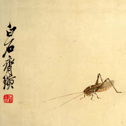 白石先生画虫,如观微观世界的诗。一只蟋蟀,墨色浓淡勾出躯干,寥寥数笔点出长腿,那跃动的姿态,似在草间振翅欲鸣;一只蜜蜂,翅翼轻描如纱,腰腹的墨痕深浅有致,便有了穿梭花丛的灵动。