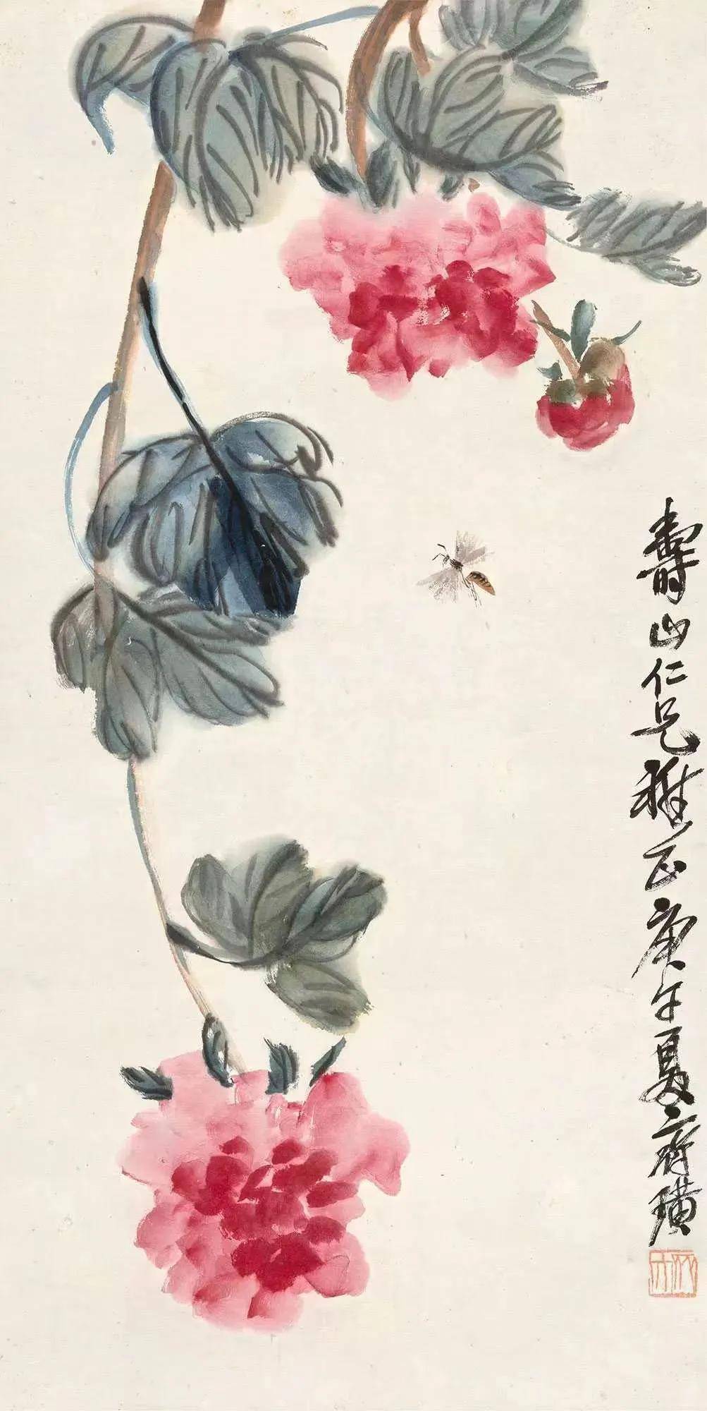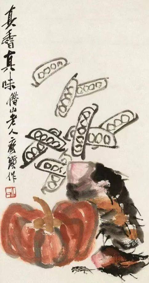 他画南瓜,粗笔写就瓜身的憨态,藤蔓如草书狂舞;画荔枝,丹砂点簇,把市井的甜意揉进了笔墨,俗得可爱,雅得真诚。