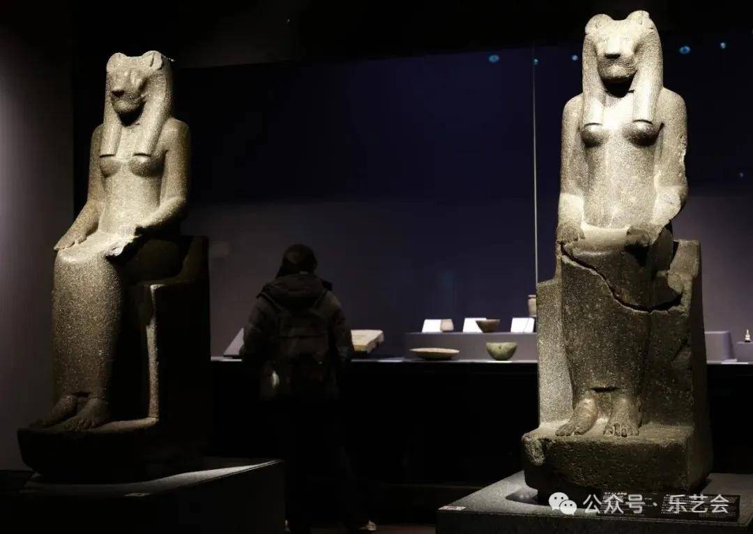 此处介绍以木乃伊为中心的古代埃及作品。在尼罗河下游,自公元前5000年左右开始便建立了富裕的农耕畜牧社会。这一地域因少受外敌入侵,从公元前3150年左右文明诞生起,独自的建筑样式以及美术工艺等富有埃及气息的文明在很长的时间里兴盛不衰。本馆所藏埃及作品的收集是始于明治37年(1904)获赠木乃伊为起点。收集品中包括刻有神圣文字的浮雕、狮头人身女神赛克迈特的雕像、以及能够了解当时人们的思想和生活状况的木雕舟及人偶。