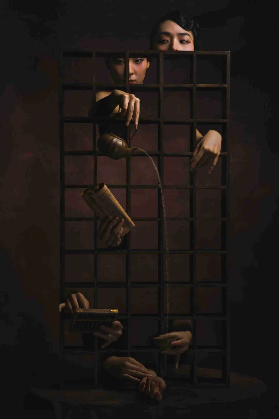 这些支离破碎的瞬间象征着过去与现在、责任与渴望之间的联系。茶水不断流淌,象征着时间悄然从指尖溜走,然而她始终沉静自若,目光穿越格栅,凝望着更远的前方。