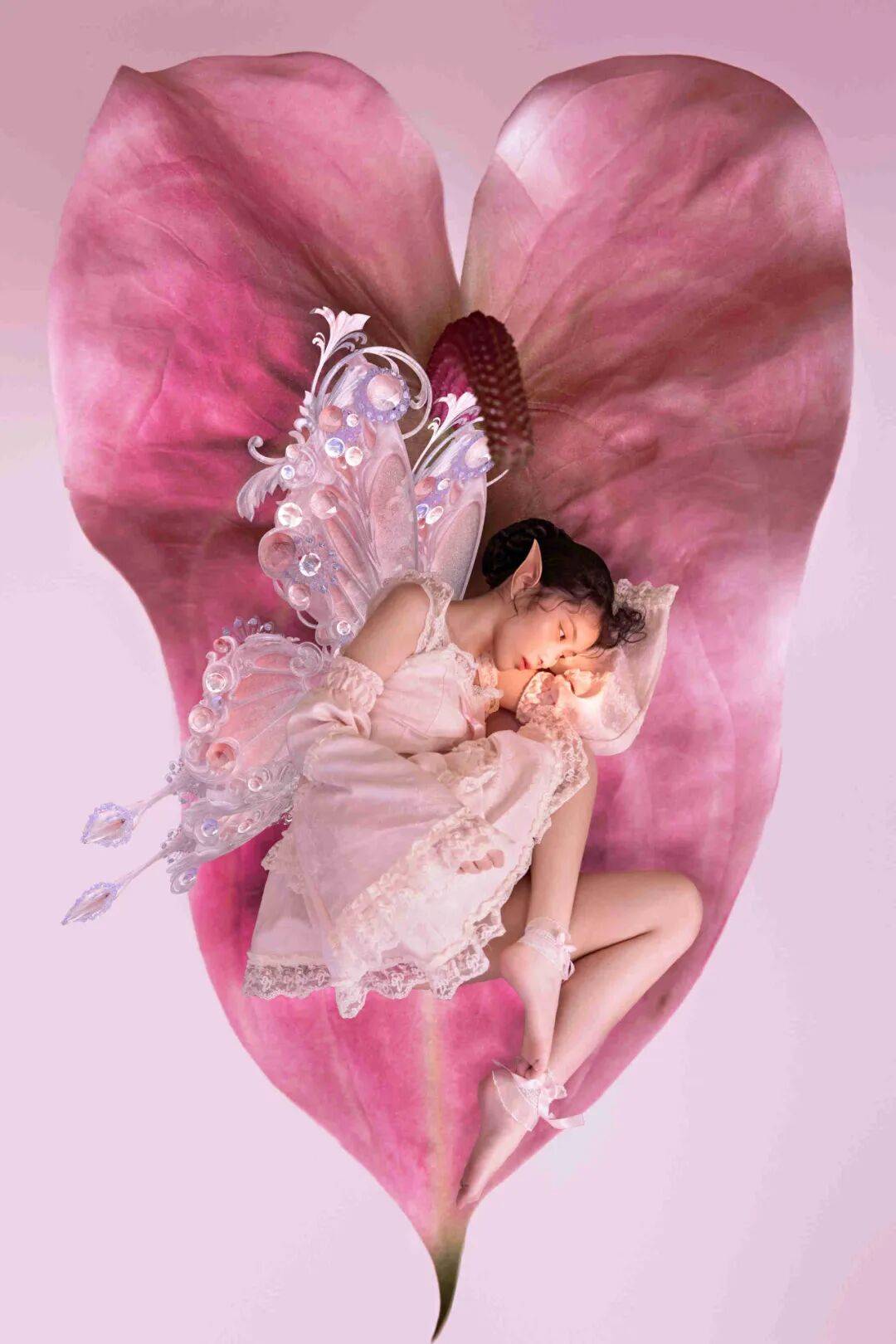 在这一刻,介于梦境与晨曦之间,她静静躺在花瓣之上,仿佛凝聚了世间所有柔软与永恒。