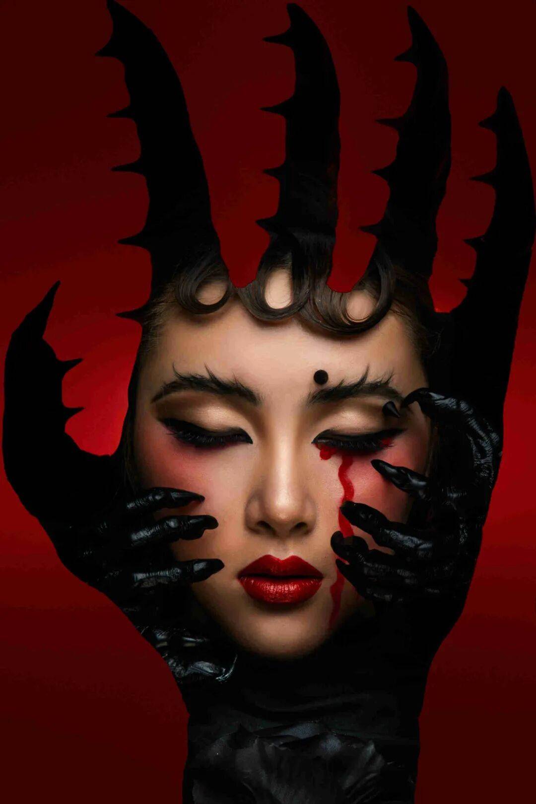 在红色的静寂中,一场关于触觉的仪式悄然展开——黑色的手从虚空中伸出,既非人也非影,将她的面容雕塑成命运的形状。每一根指尖都藏着不同的情绪:欲望、恐惧、记忆、权力与臣服。它们不是掐紧,而是定义。